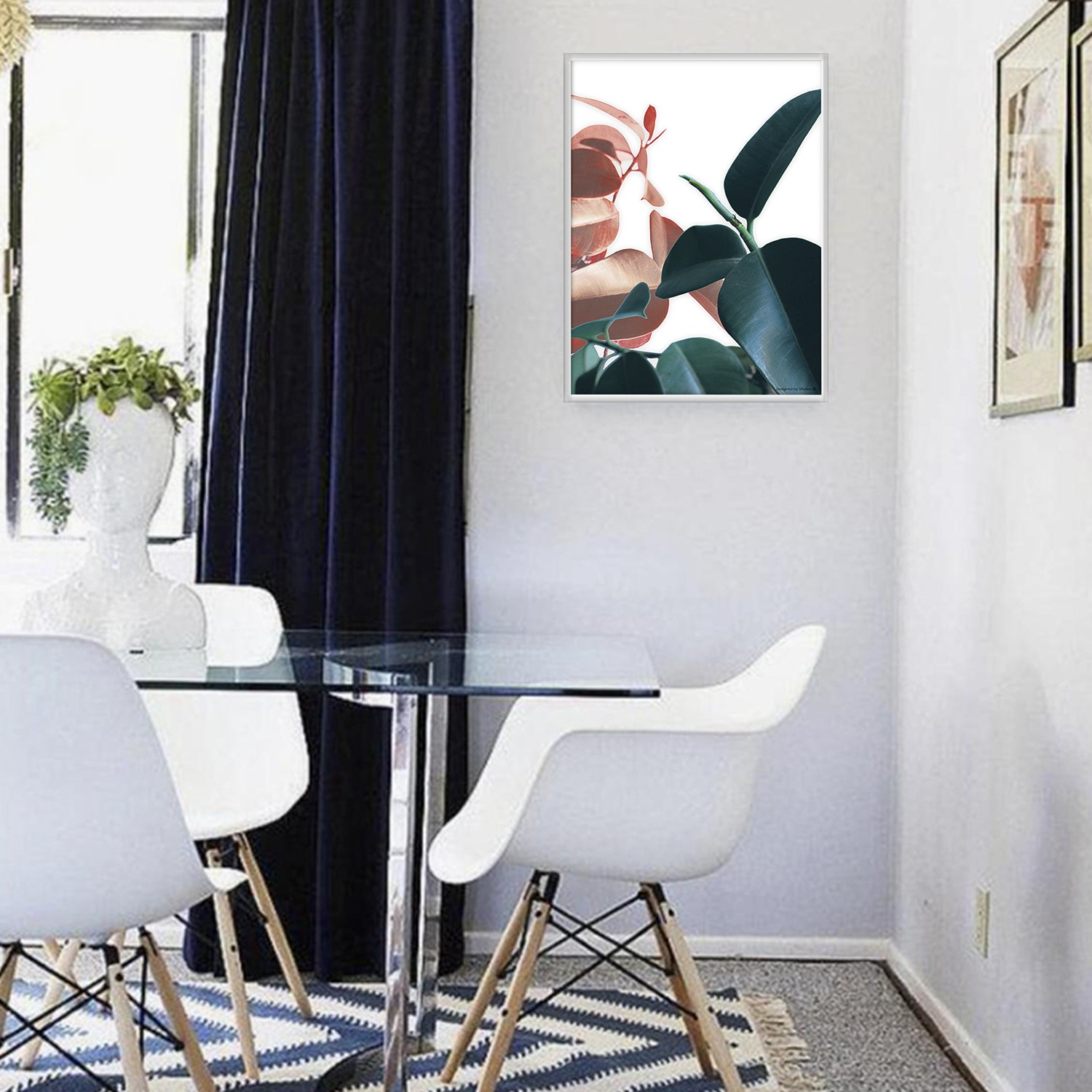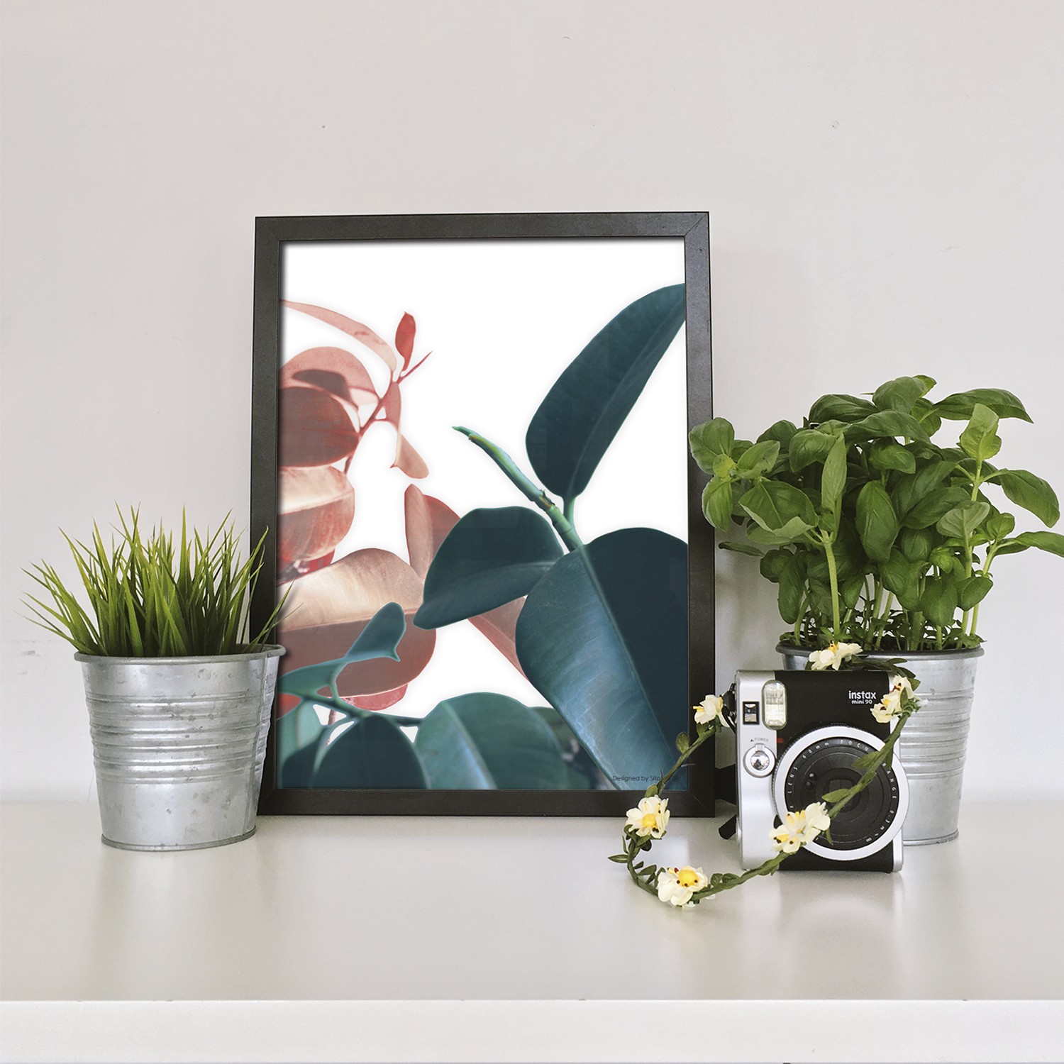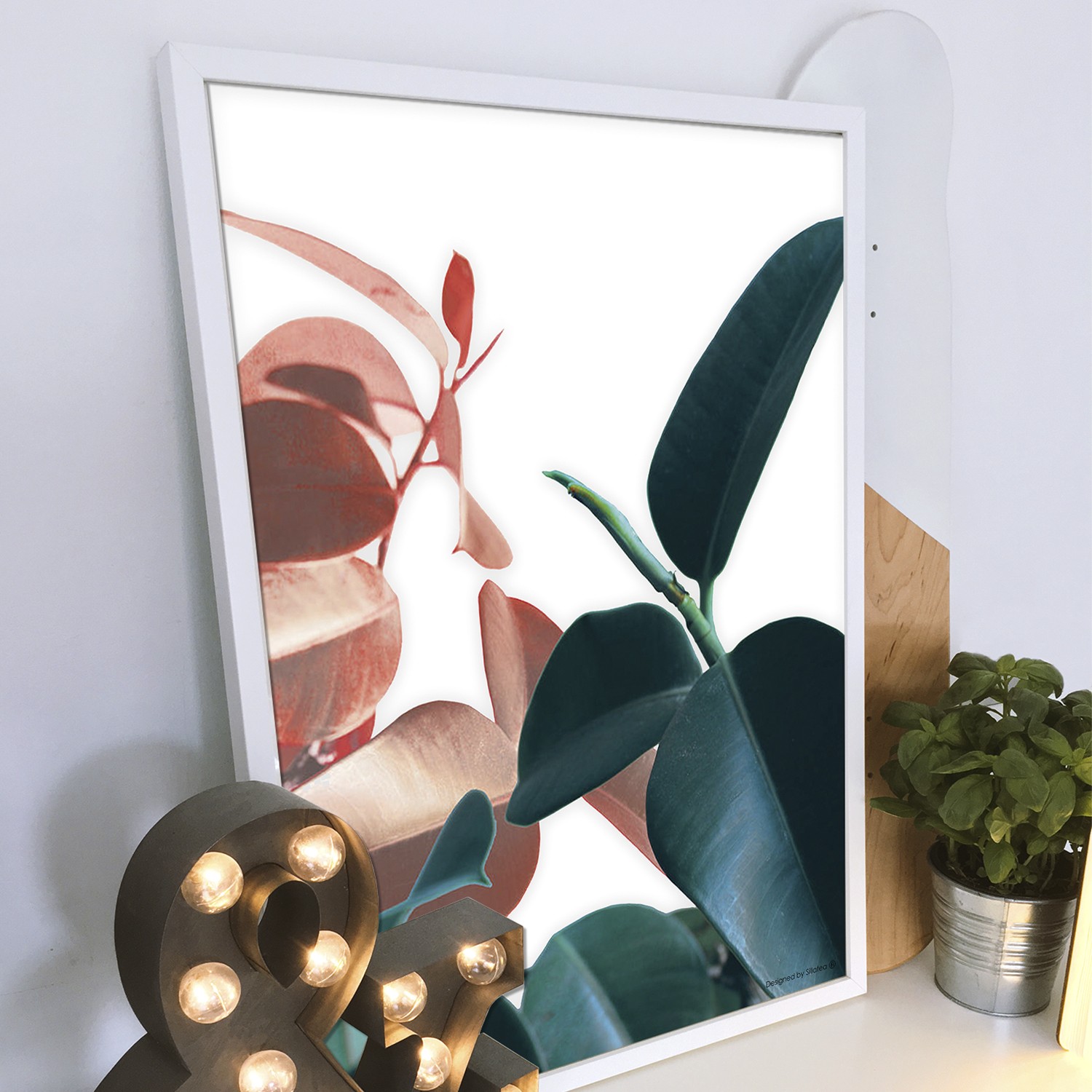 La lámina con marco  FICUS está diseñada para colgar en la pared de forma bien sencilla, pero también puedes apoyarlo en estanterías o mesas, puede ser una buena opción como elemento decorativo de sobremesa.