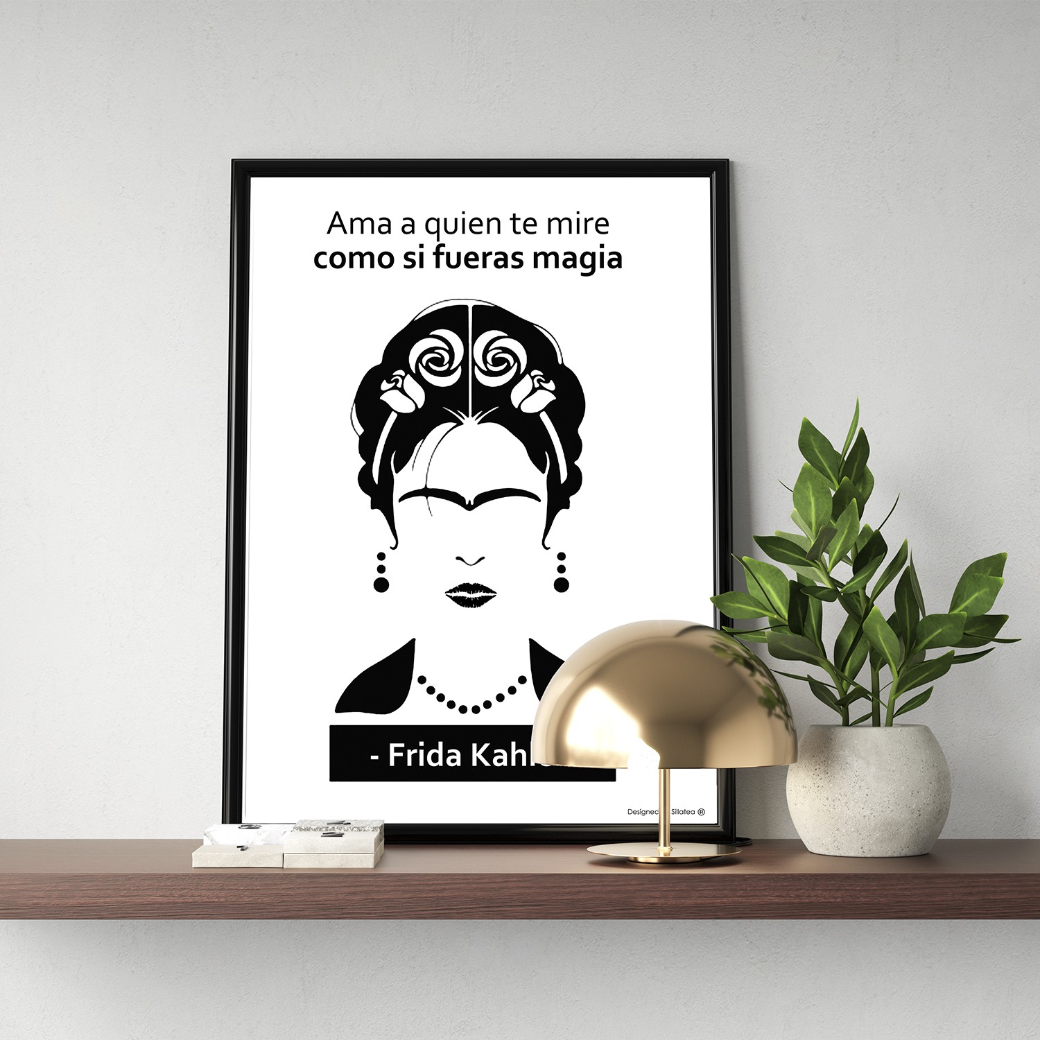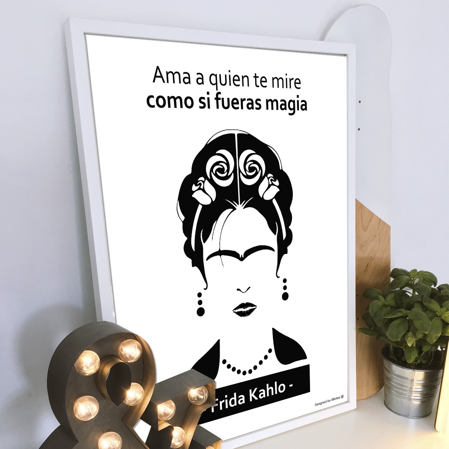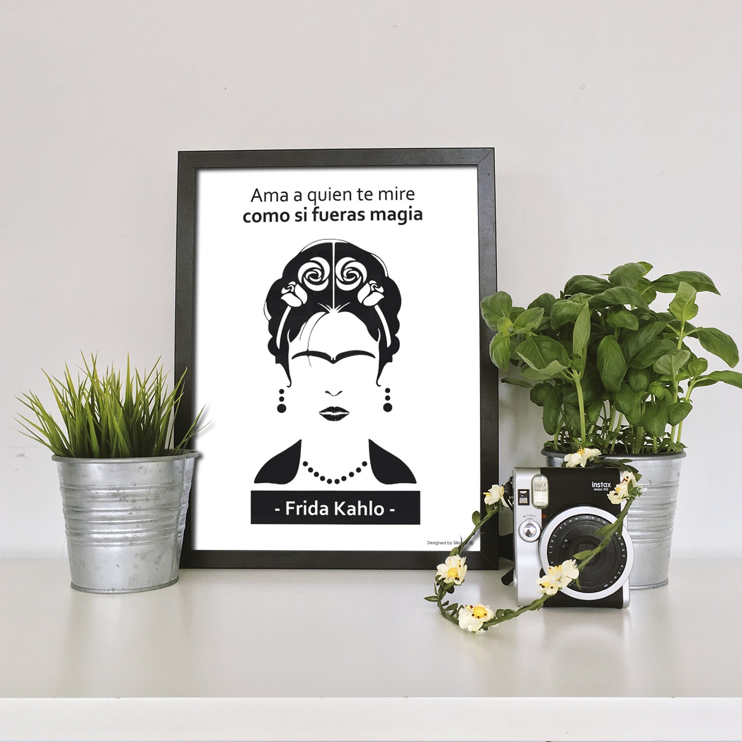 La lámina con marco FRIDA KAHLO está diseñada para colgar en la pared de forma bien sencilla, pero también puedes apoyarlo en estanterías o mesas, puede ser una buena opción como elemento decorativo de sobremesa.