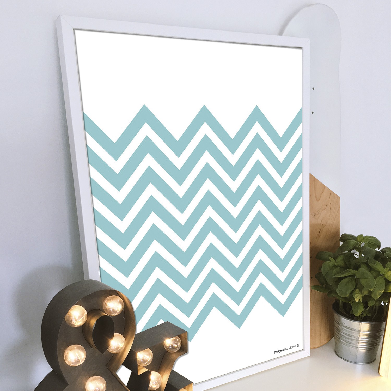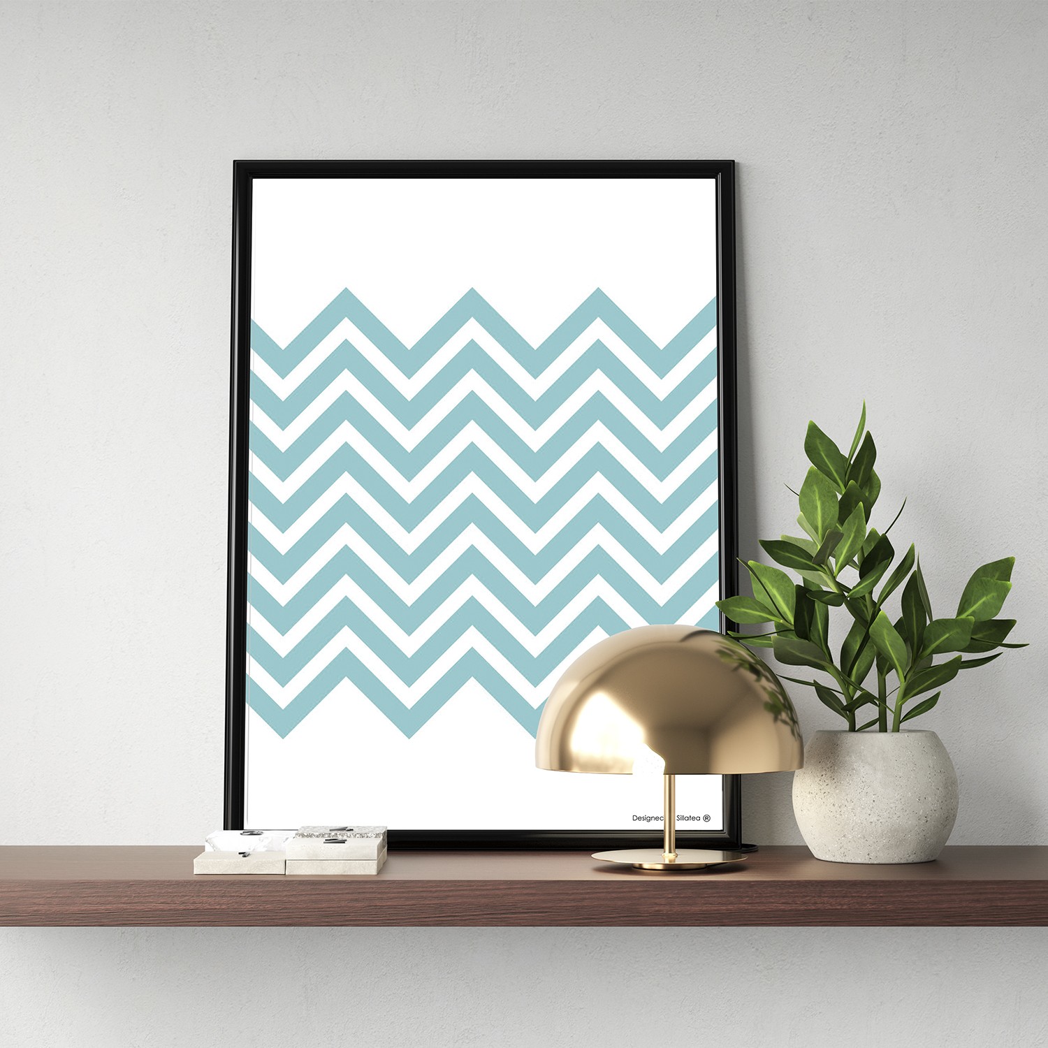 La lámina con marco GEOMETRIC BLUE WAVES está diseñada para colgar en la pared de forma bien sencilla, pero también puedes apoyarlo en estanterías o mesas, puede ser una buena opción como elemento decorativo de sobremesa.