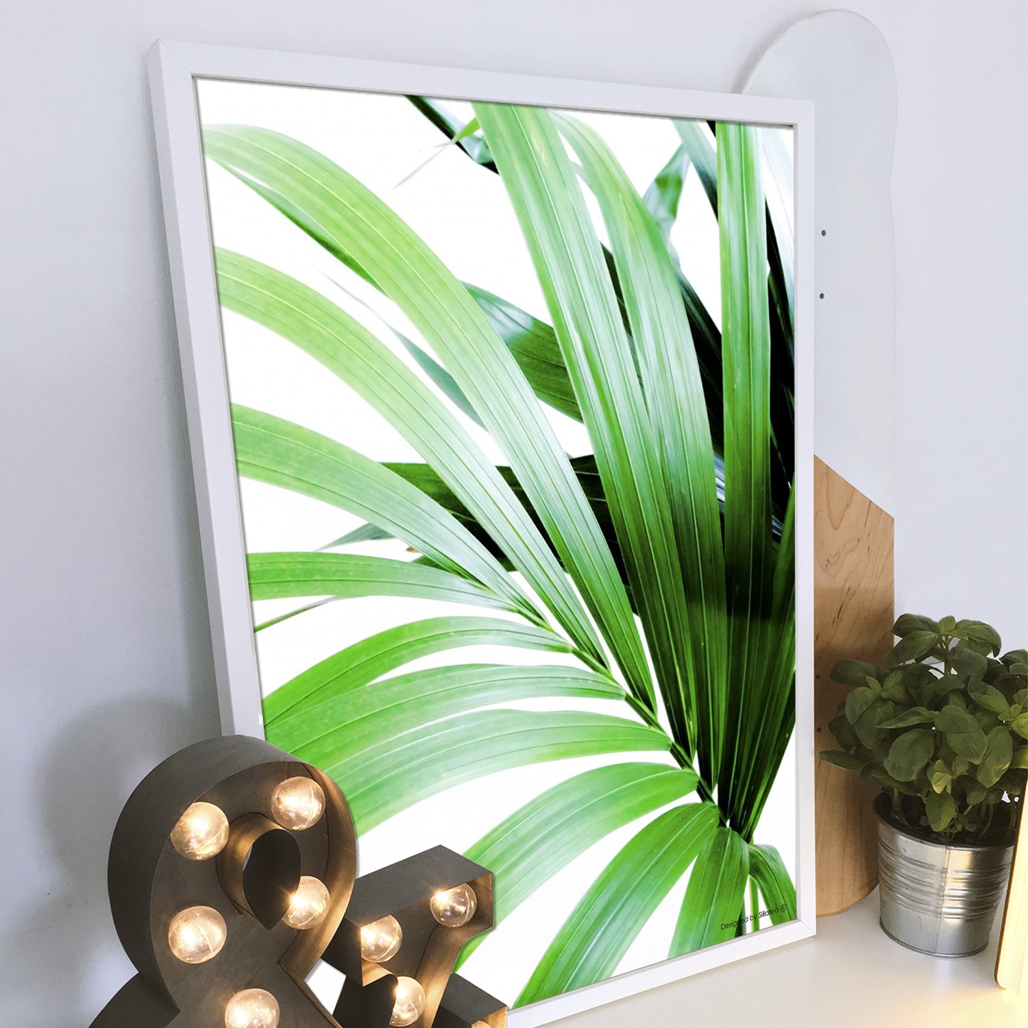 La lámina con marco GREEN PALM está diseñada para colgar en la pared de forma bien sencilla, pero también puedes apoyarlo en estanterías o mesas, puede ser una buena opción como elemento decorativo de sobremesa.
