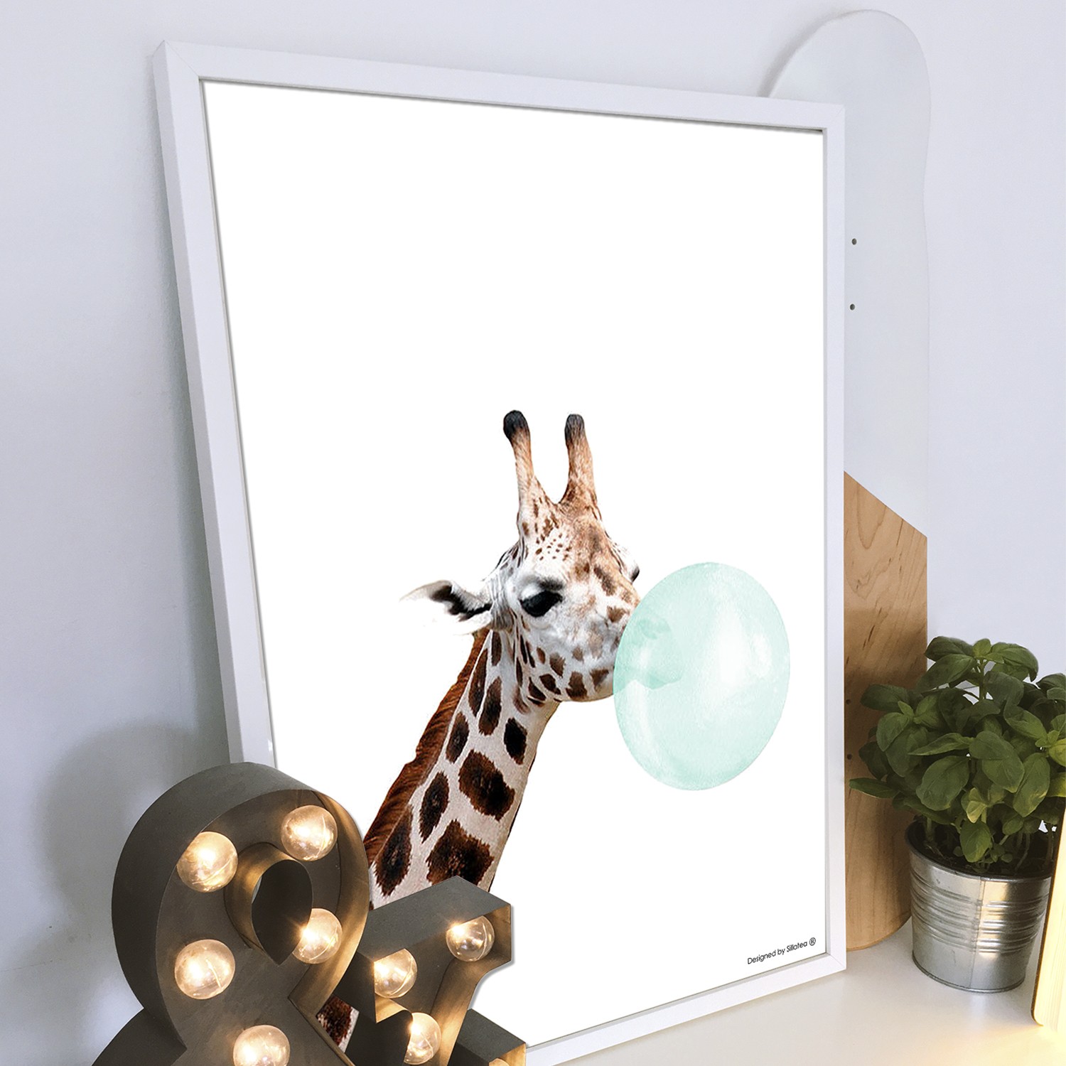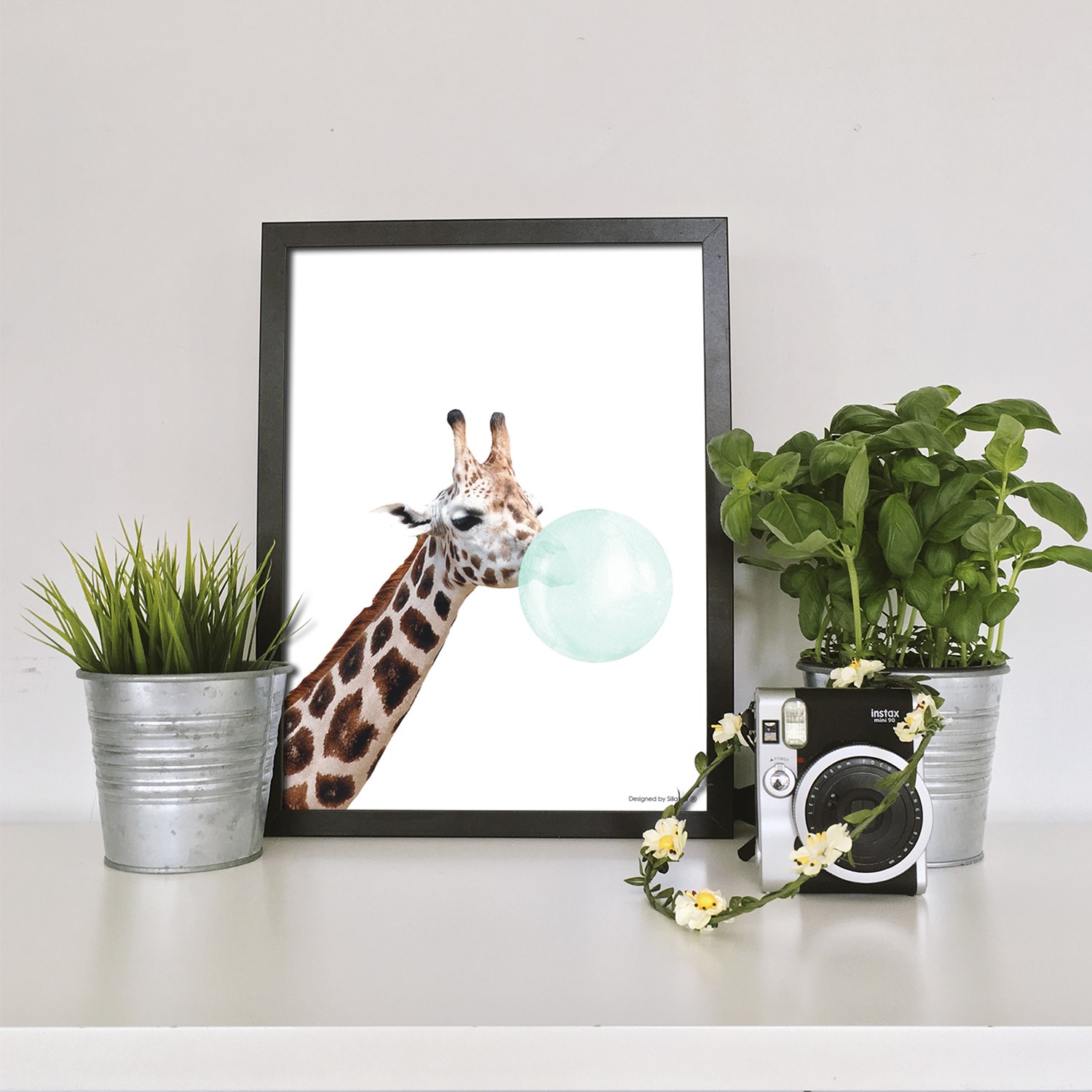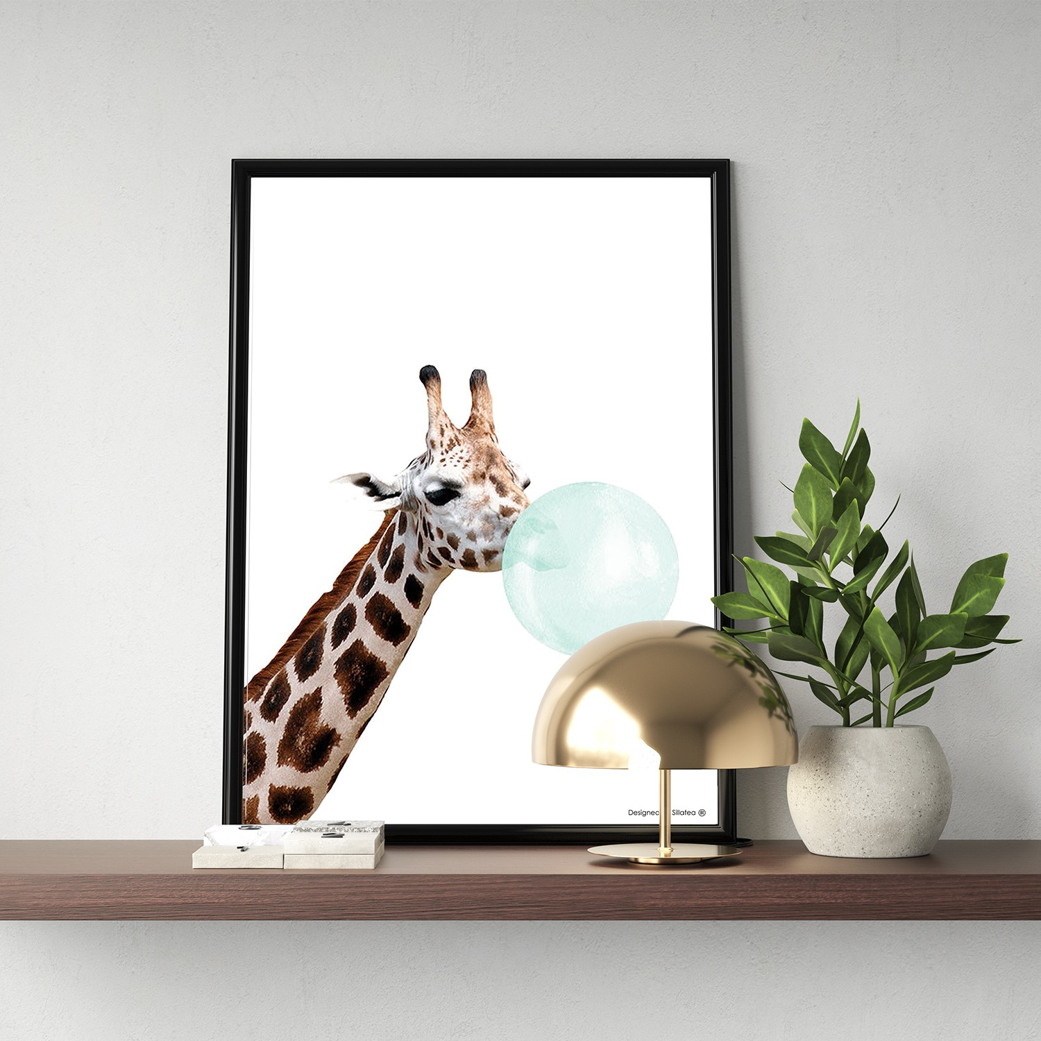 La lámina con marco JIRAFA POMPA está diseñada para colgar en la pared de forma bien sencilla, pero también puedes apoyarlo en estanterías o mesas, puede ser una buena opción como elemento decorativo de sobremesa.