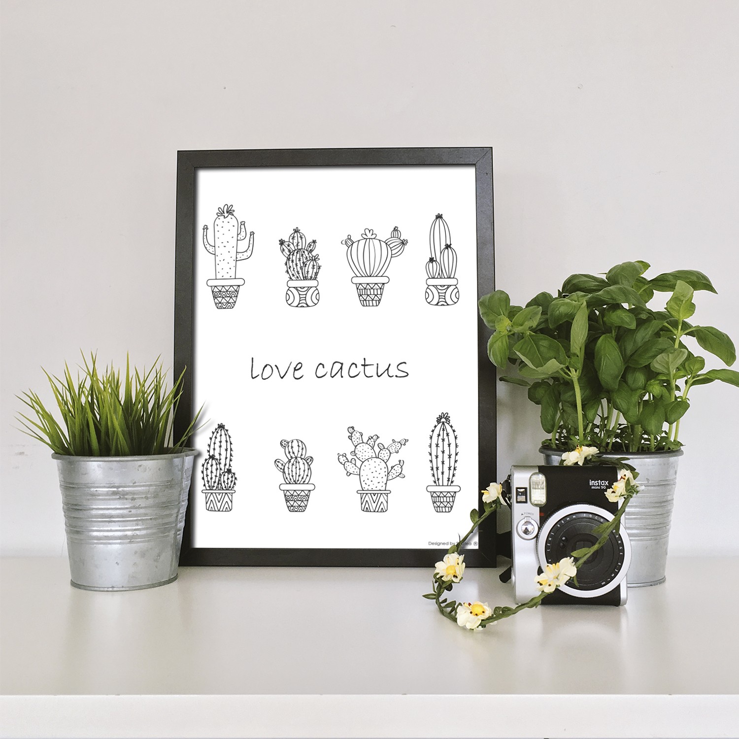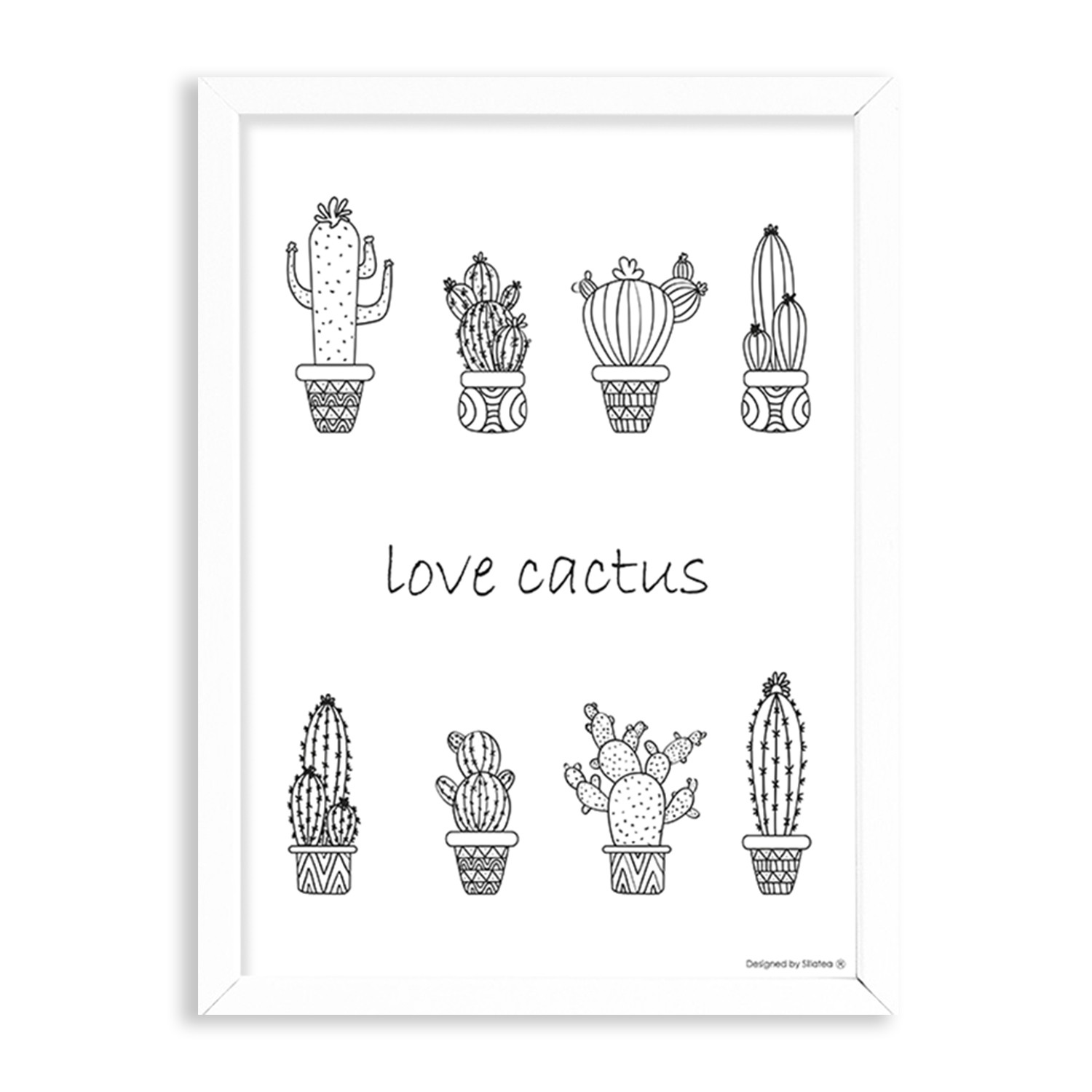 La lámina con marco LOVE CACTUS está diseñada para colgar en la pared de forma bien sencilla, pero también puedes apoyarlo en estanterías o mesas, puede ser una buena opción como elemento decorativo de sobremesa.