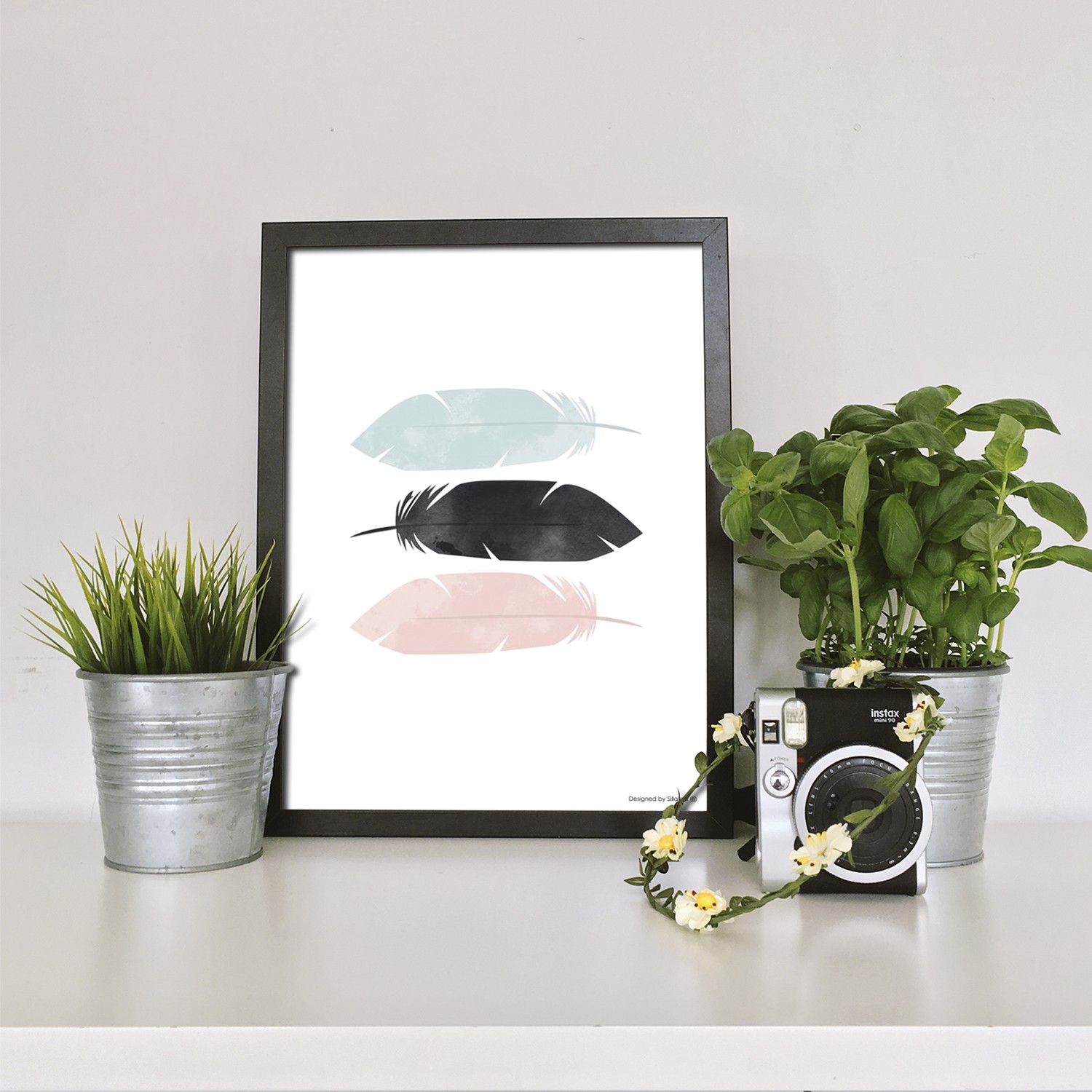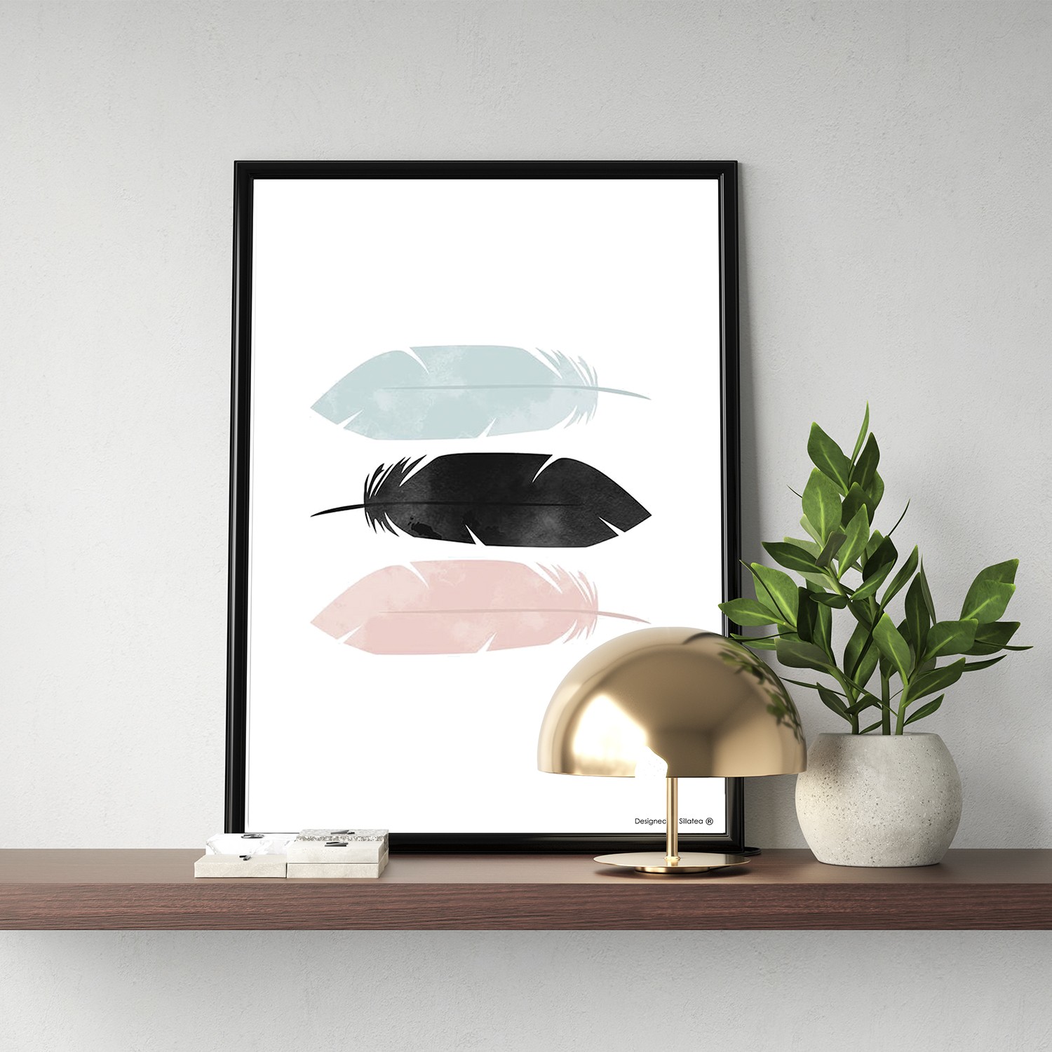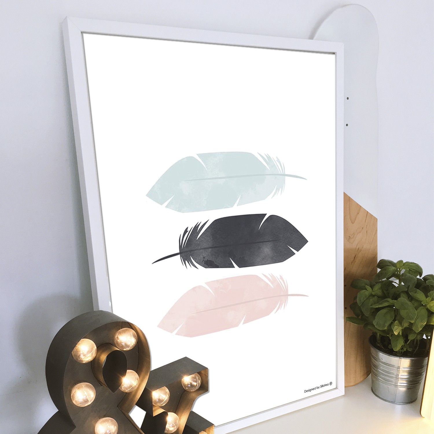 La lámina con marco NORDIC PLUME está diseñada para colgar en la pared de forma bien sencilla, pero también puedes apoyarlo en estanterías o mesas, puede ser una buena opción como elemento decorativo de sobremesa.