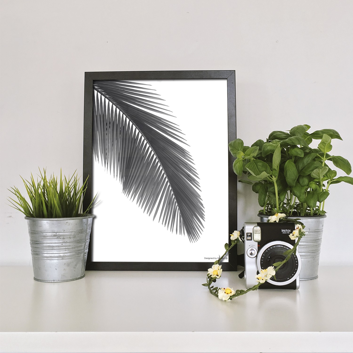 La lámina con marco PALM LEAF está diseñada para colgar en la pared de forma bien sencilla, pero también puedes apoyarlo en estanterías o mesas, puede ser una buena opción como elemento decorativo de sobremesa.