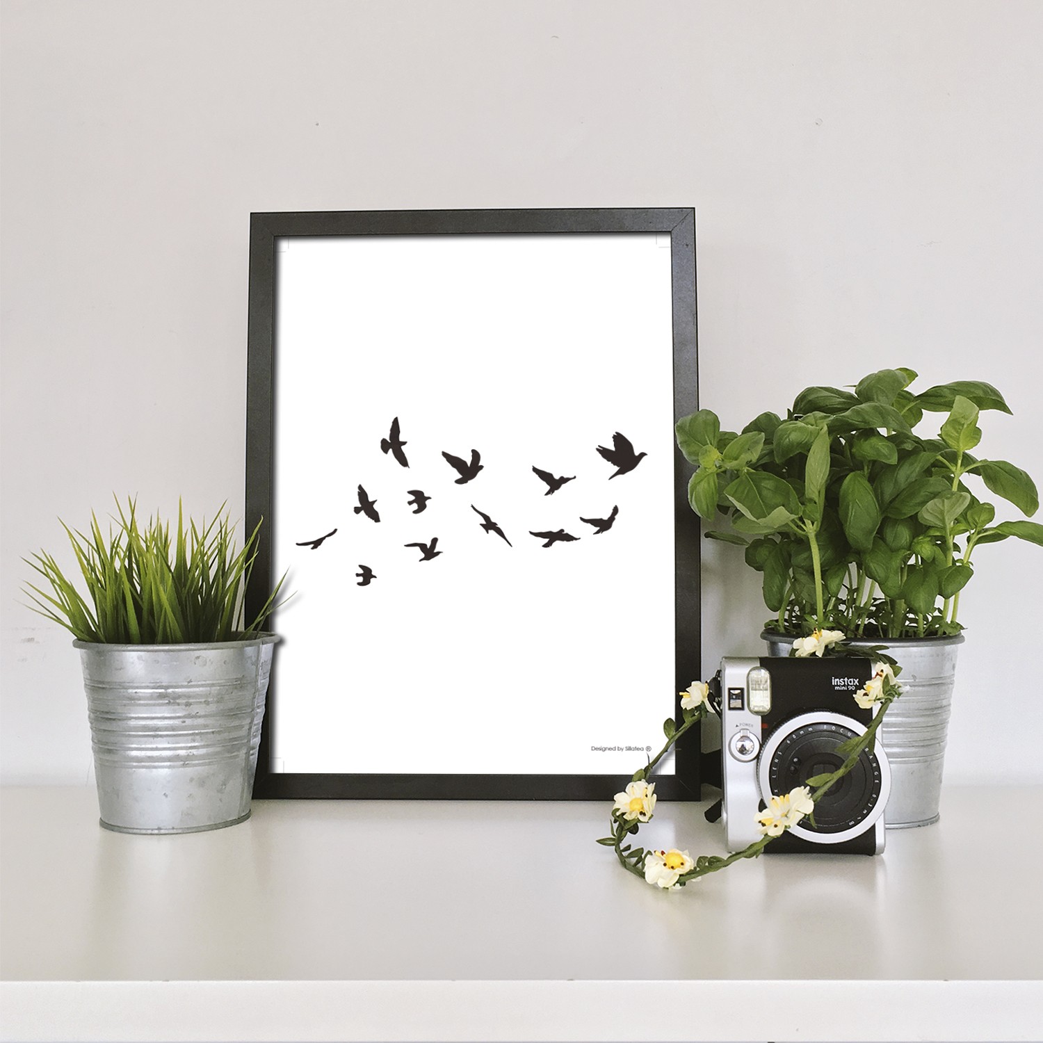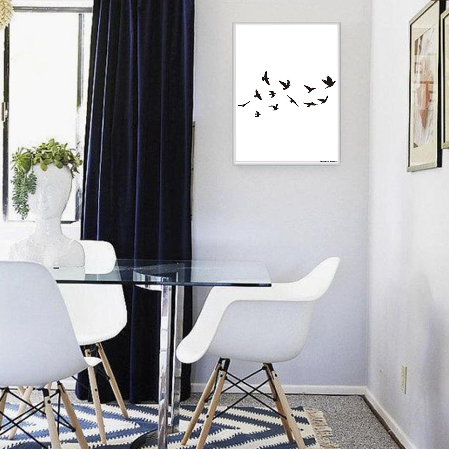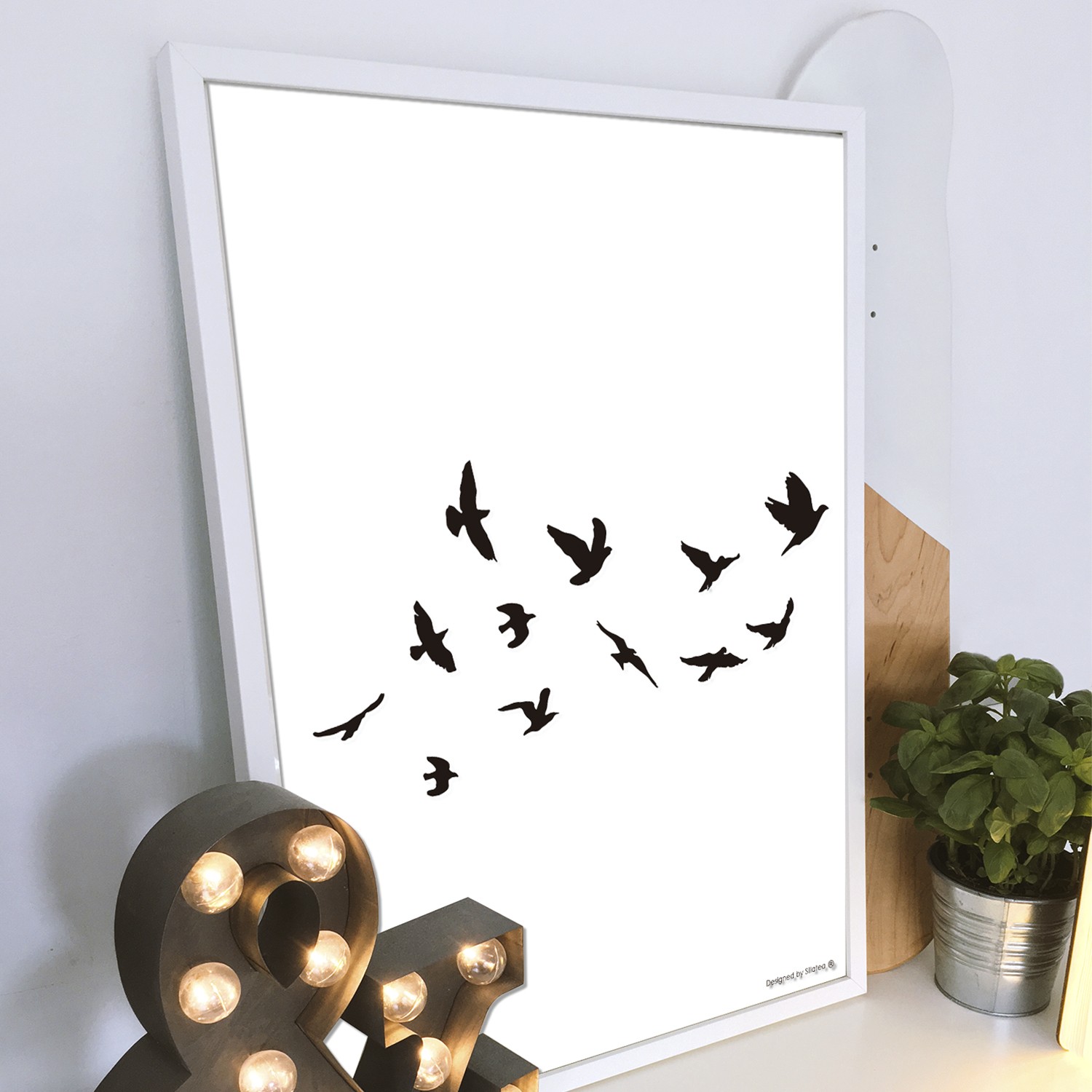 La lámina con marco PALOMAS está diseñada para colgar en la pared de forma bien sencilla, pero también puedes apoyarlo en estanterías o mesas, puede ser una buena opción como elemento decorativo de sobremesa.
