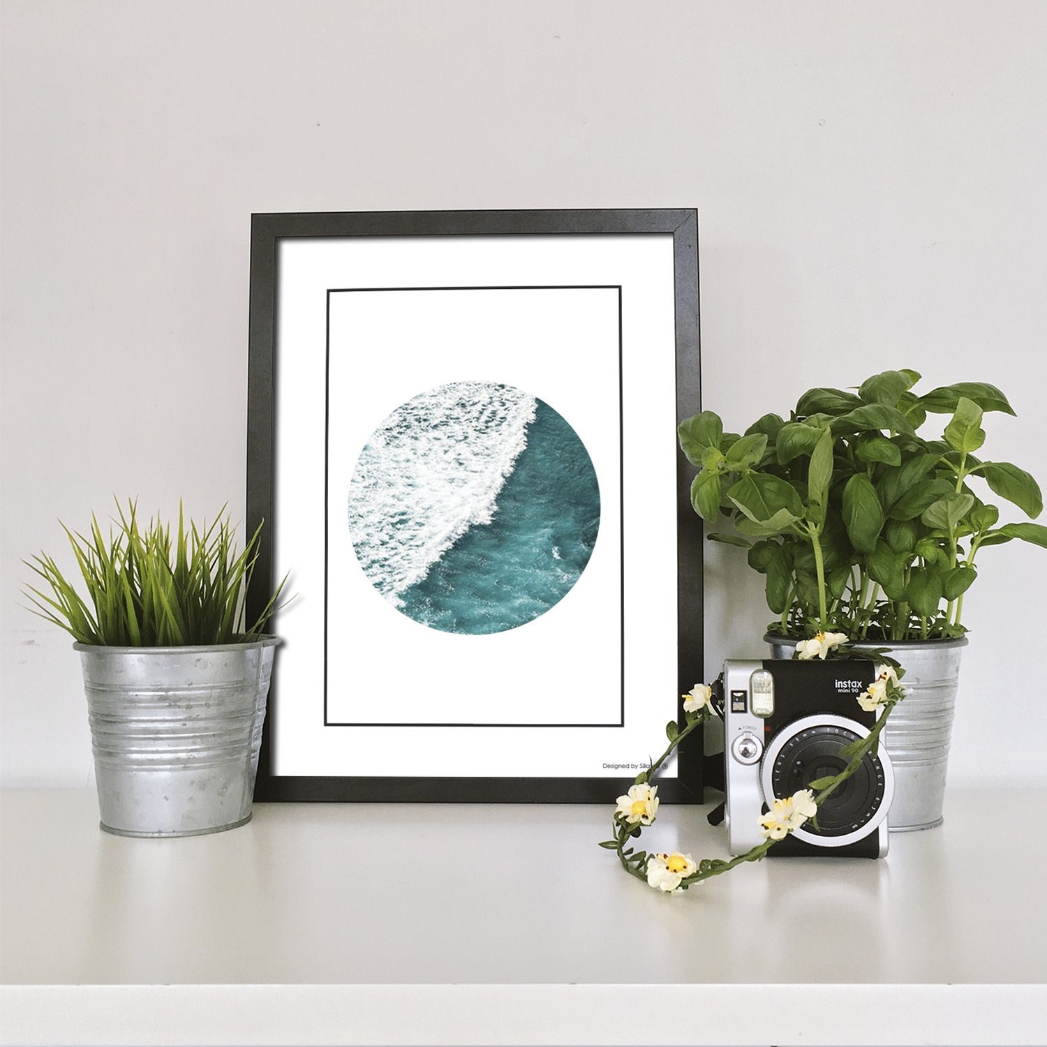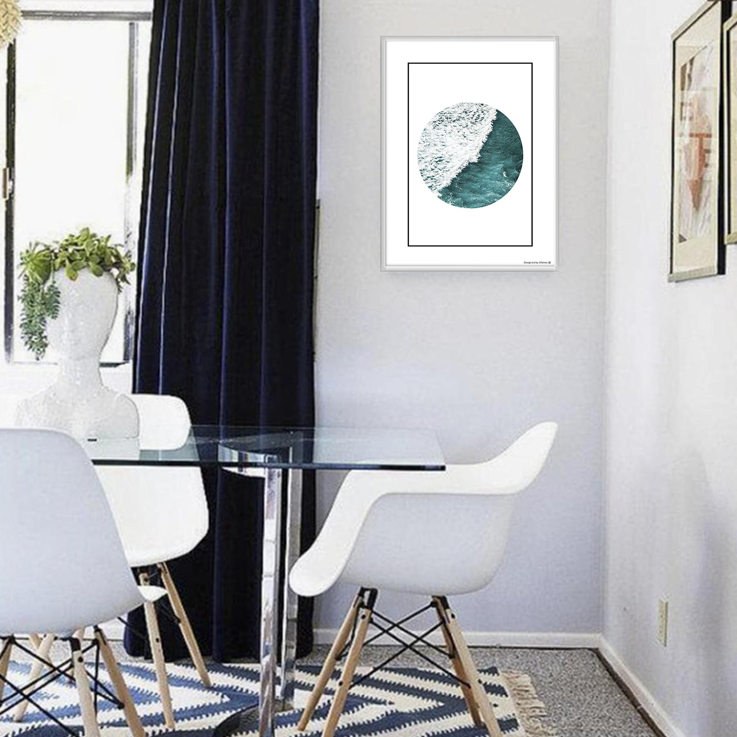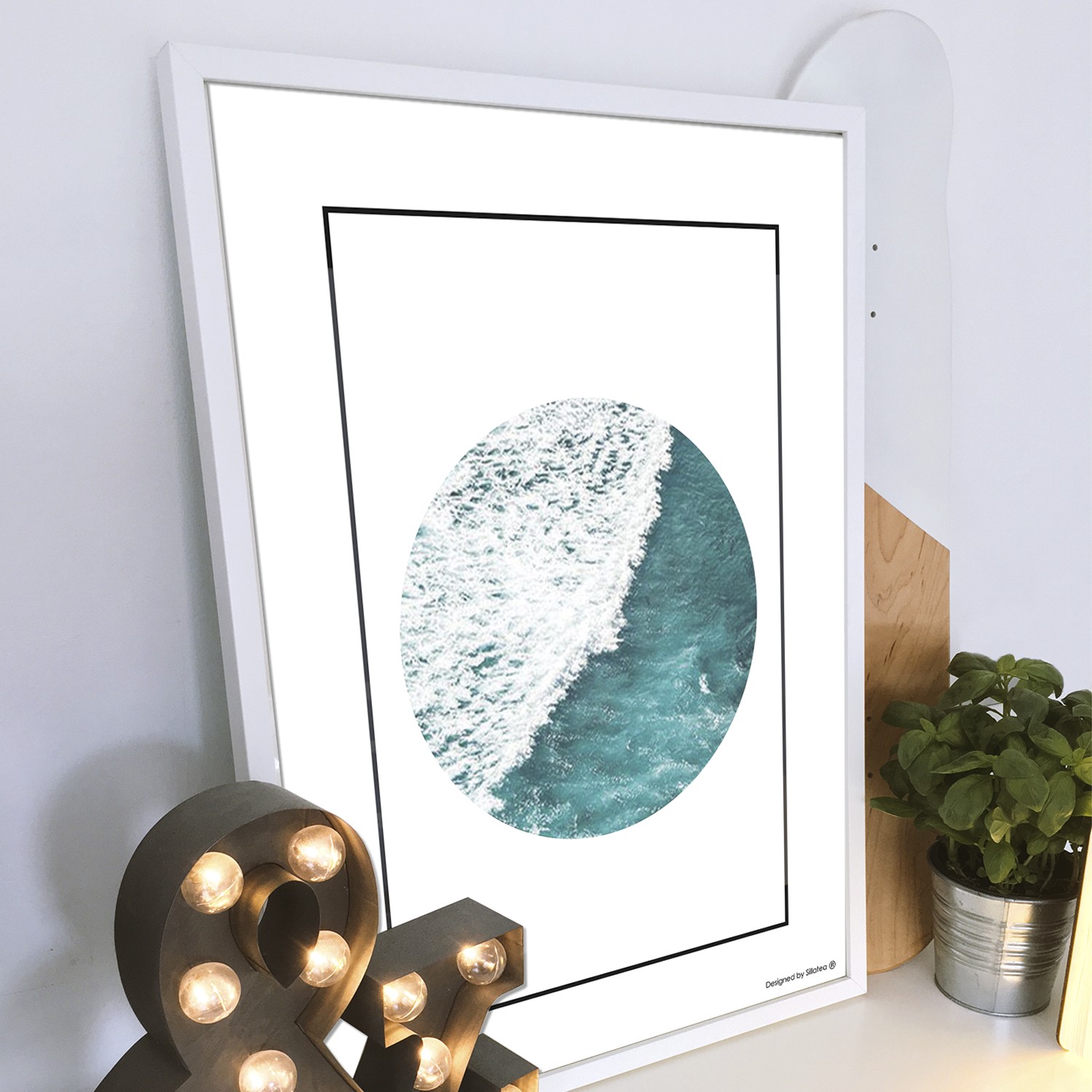 La lámina con marco SEA CIRCLE está diseñada para colgar en la pared de forma bien sencilla, pero también puedes apoyarlo en estanterías o mesas, puede ser una buena opción como elemento decorativo de sobremesa.