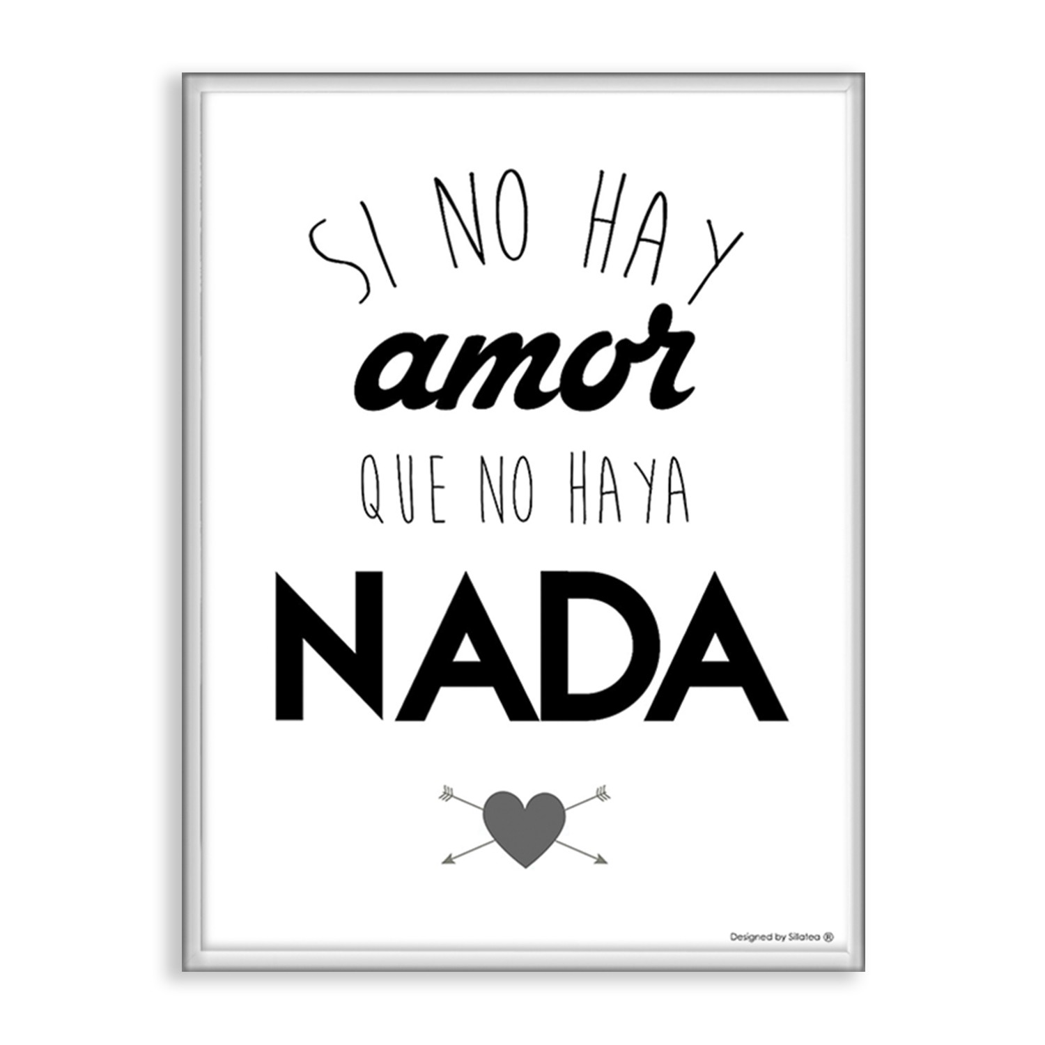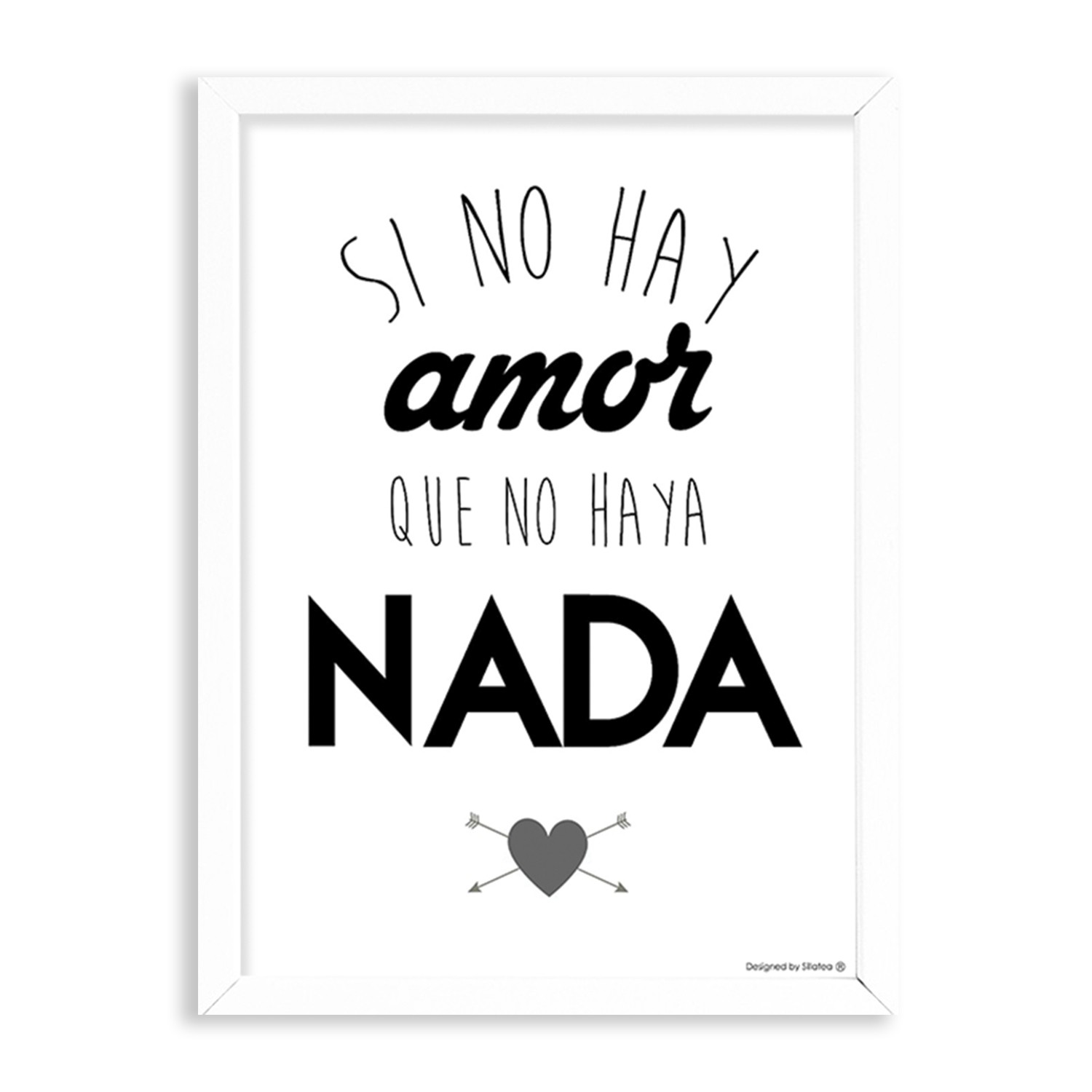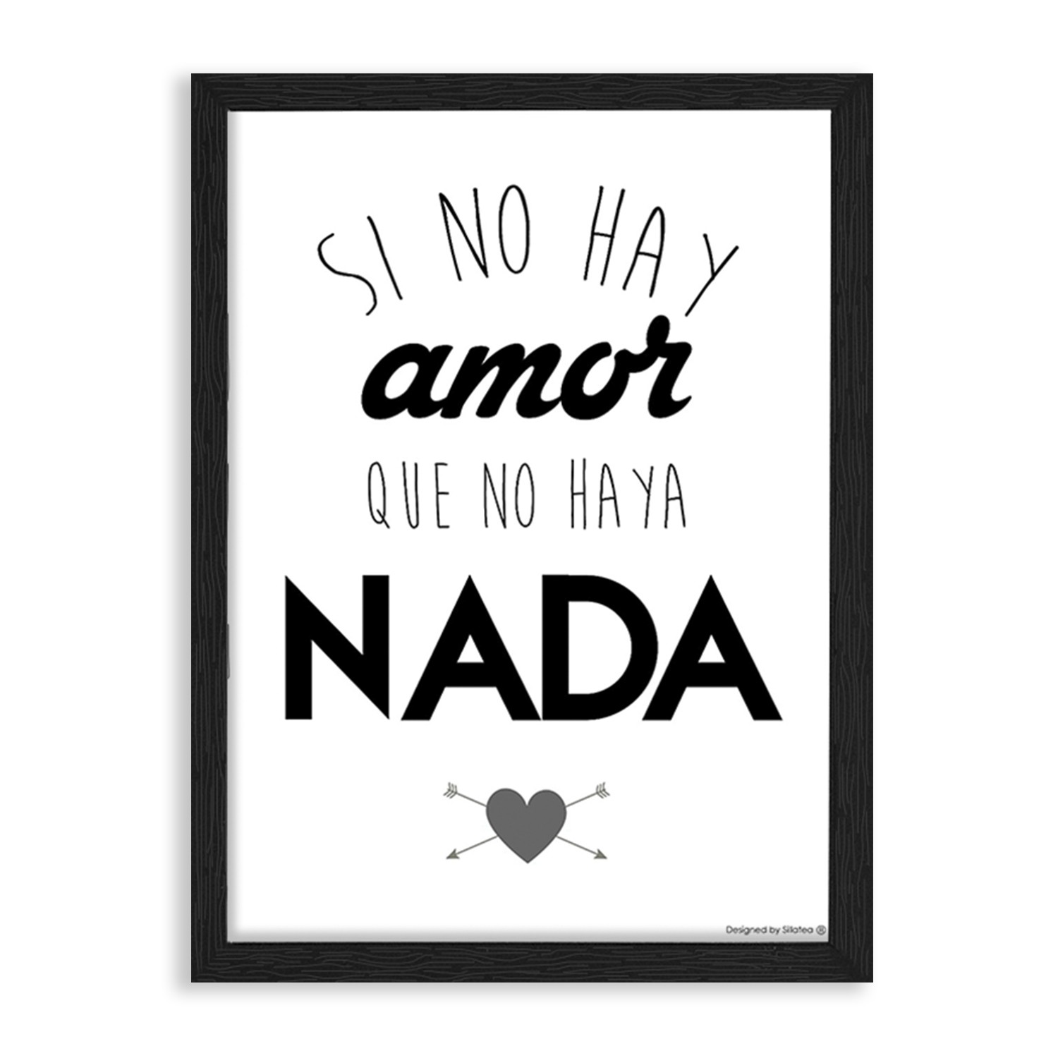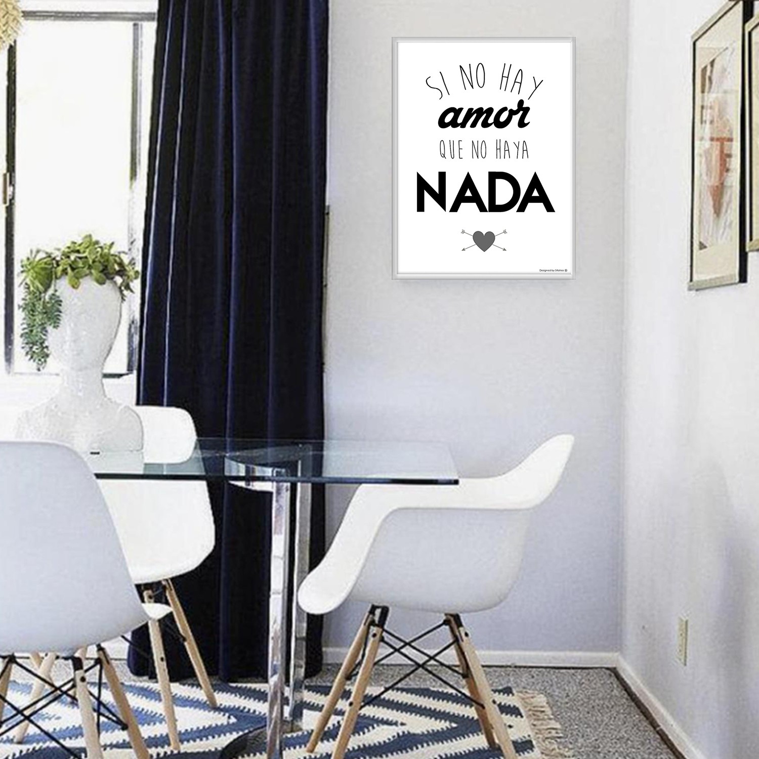 La lámina con marco SI NO HAY AMOR está diseñada para colgar en la pared de forma bien sencilla, pero también puedes apoyarlo en estanterías o mesas, puede ser una buena opción como elemento decorativo de sobremesa.