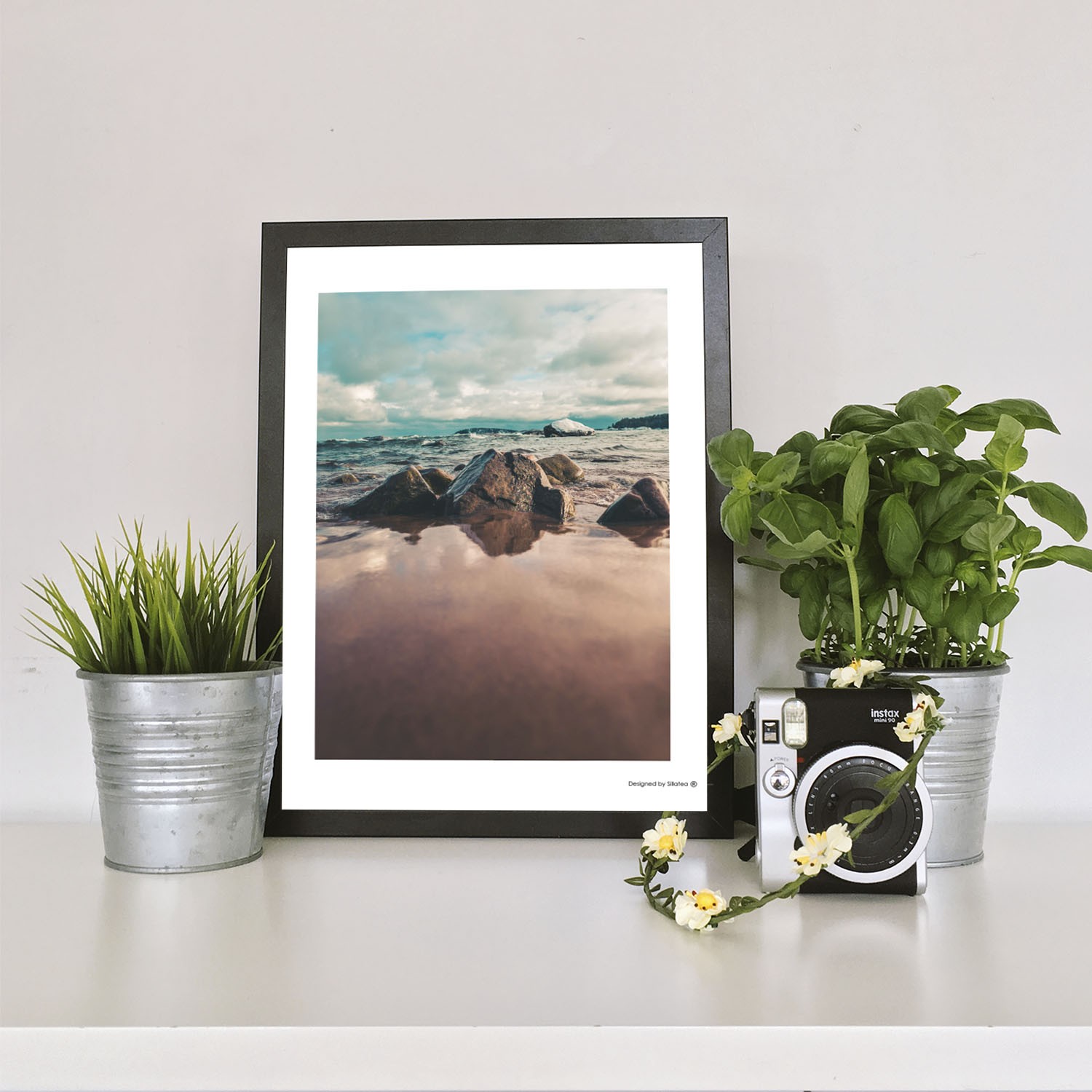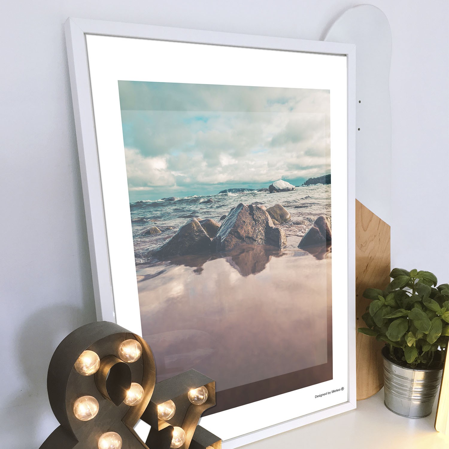 La lámina con marco STONES está diseñada para colgar en la pared de forma bien sencilla, pero también puedes apoyarlo en estanterías o mesas, puede ser una buena opción como elemento decorativo de sobremesa.