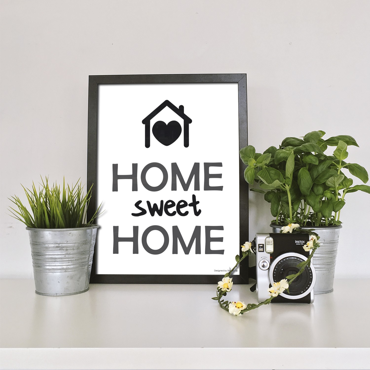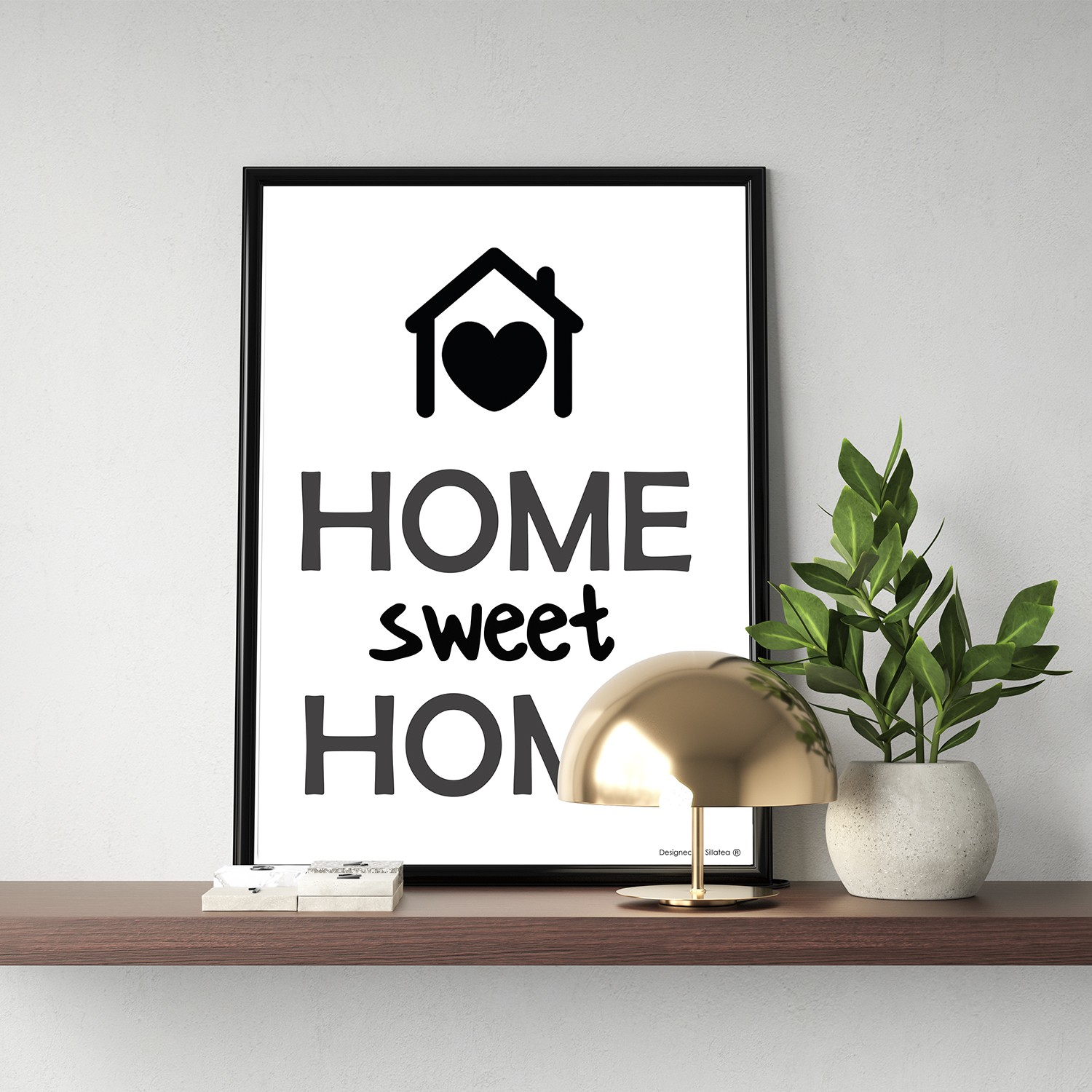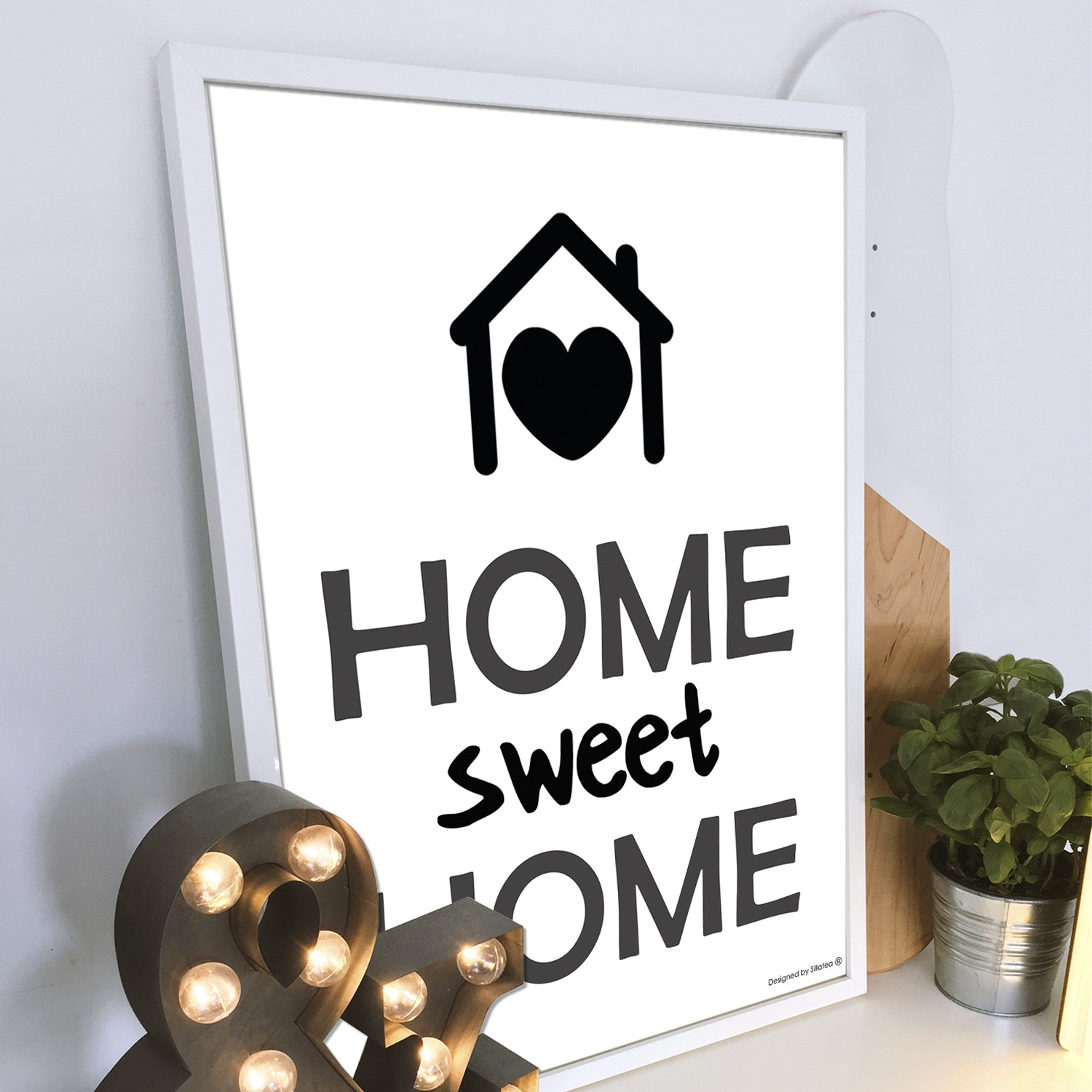 La lámina con marco SWEET HOME está diseñada para colgar en la pared de forma bien sencilla, pero también puedes apoyarlo en estanterías o mesas, puede ser una buena opción como elemento decorativo de sobremesa.