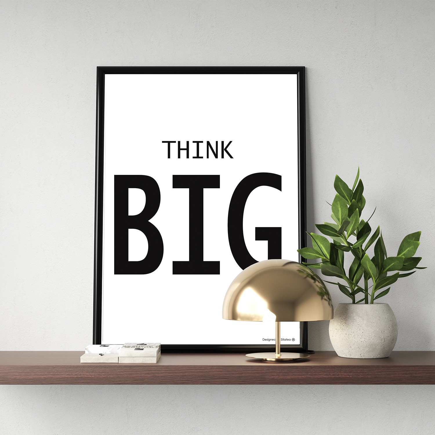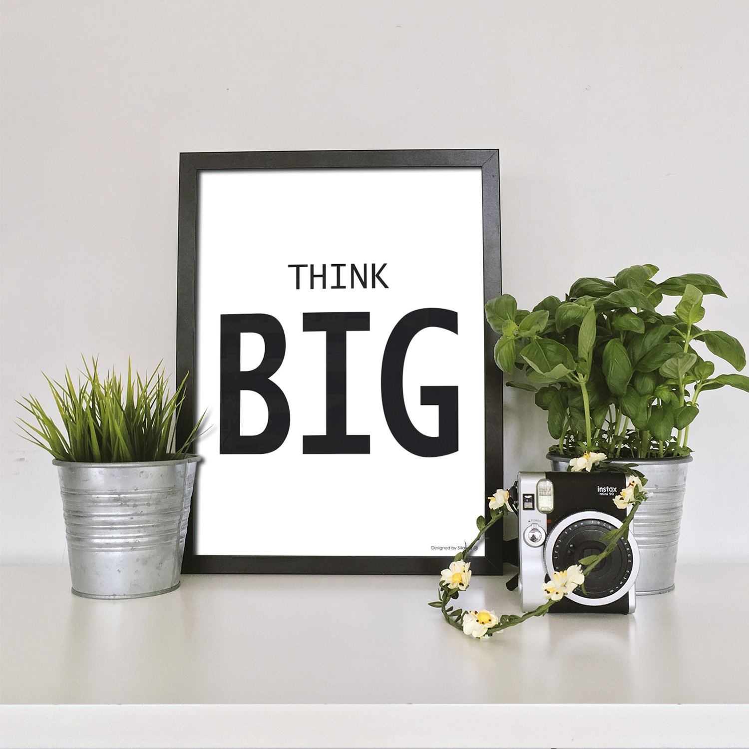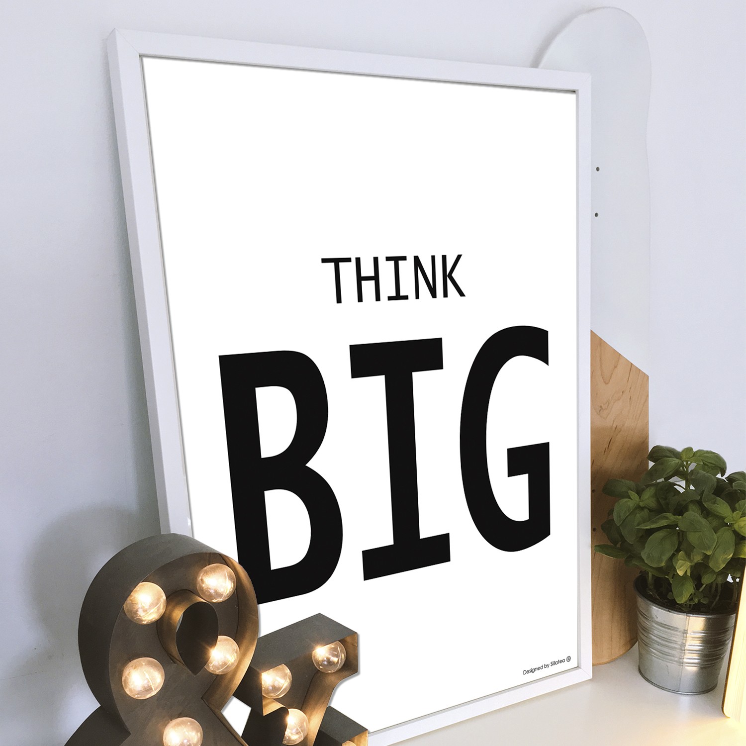 La lámina con marco THINK BIG está diseñada para colgar en la pared de forma bien sencilla, pero también puedes apoyarlo en estanterías o mesas, puede ser una buena opción como elemento decorativo de sobremesa.