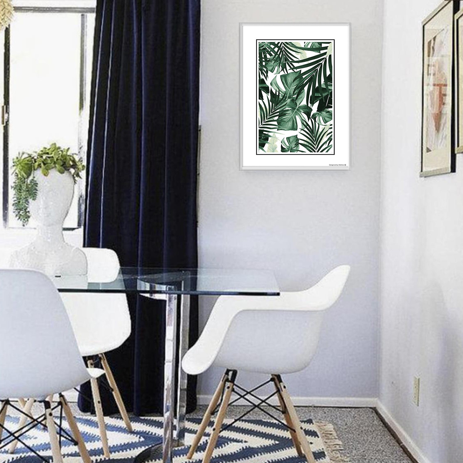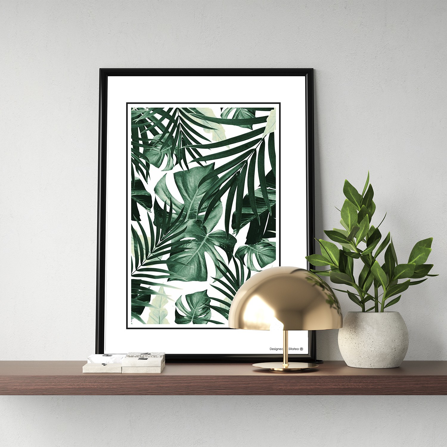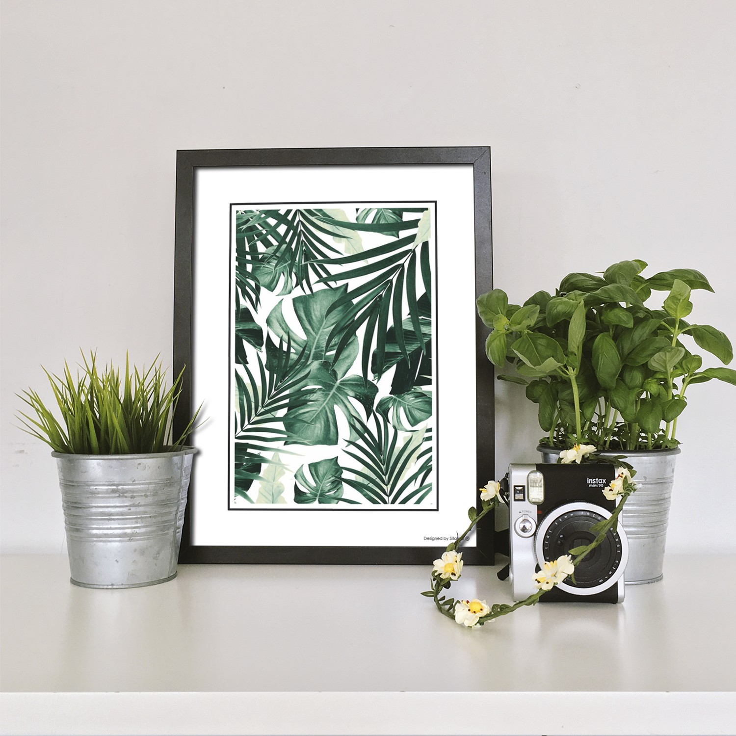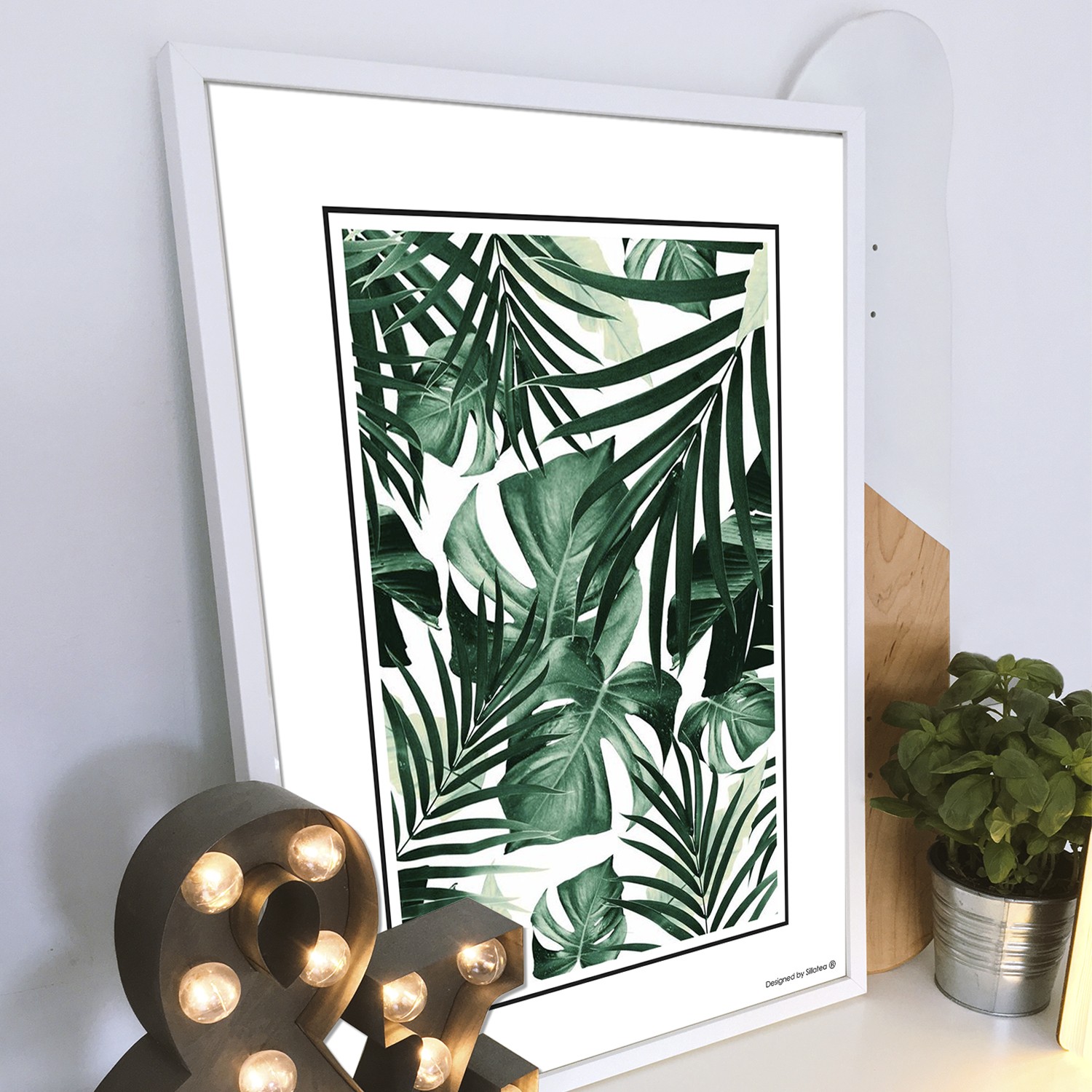 La lámina con marco TROPICAL PLANTS MIX está diseñada para colgar en la pared de forma bien sencilla, pero también puedes apoyarlo en estanterías o mesas, puede ser una buena opción como elemento decorativo de sobremesa.