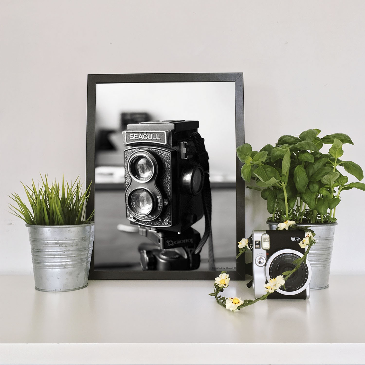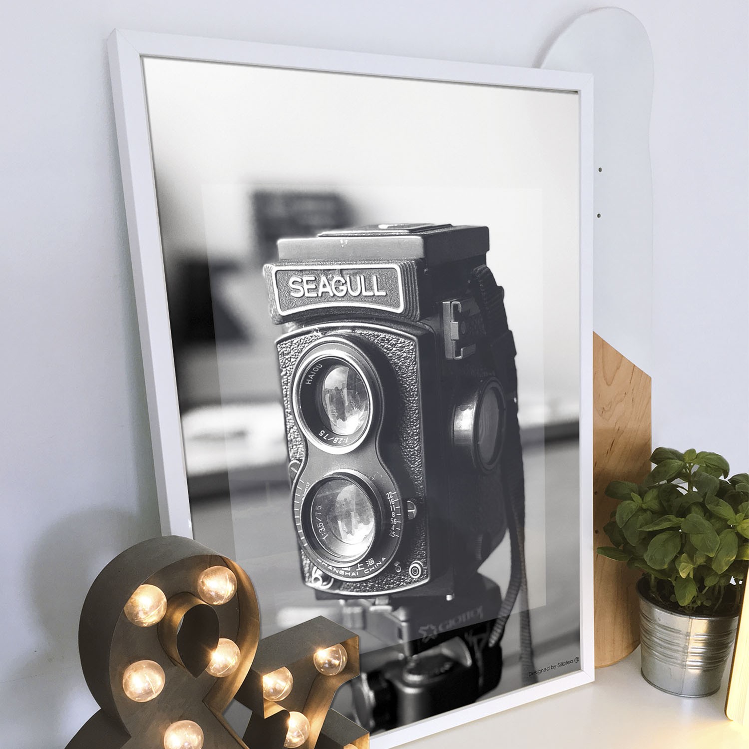 La lámina con marco VINTAGE CAMERA está diseñada para colgar en la pared de forma bien sencilla, pero también puedes apoyarlo en estanterías o mesas, puede ser una buena opción como elemento decorativo de sobremesa.