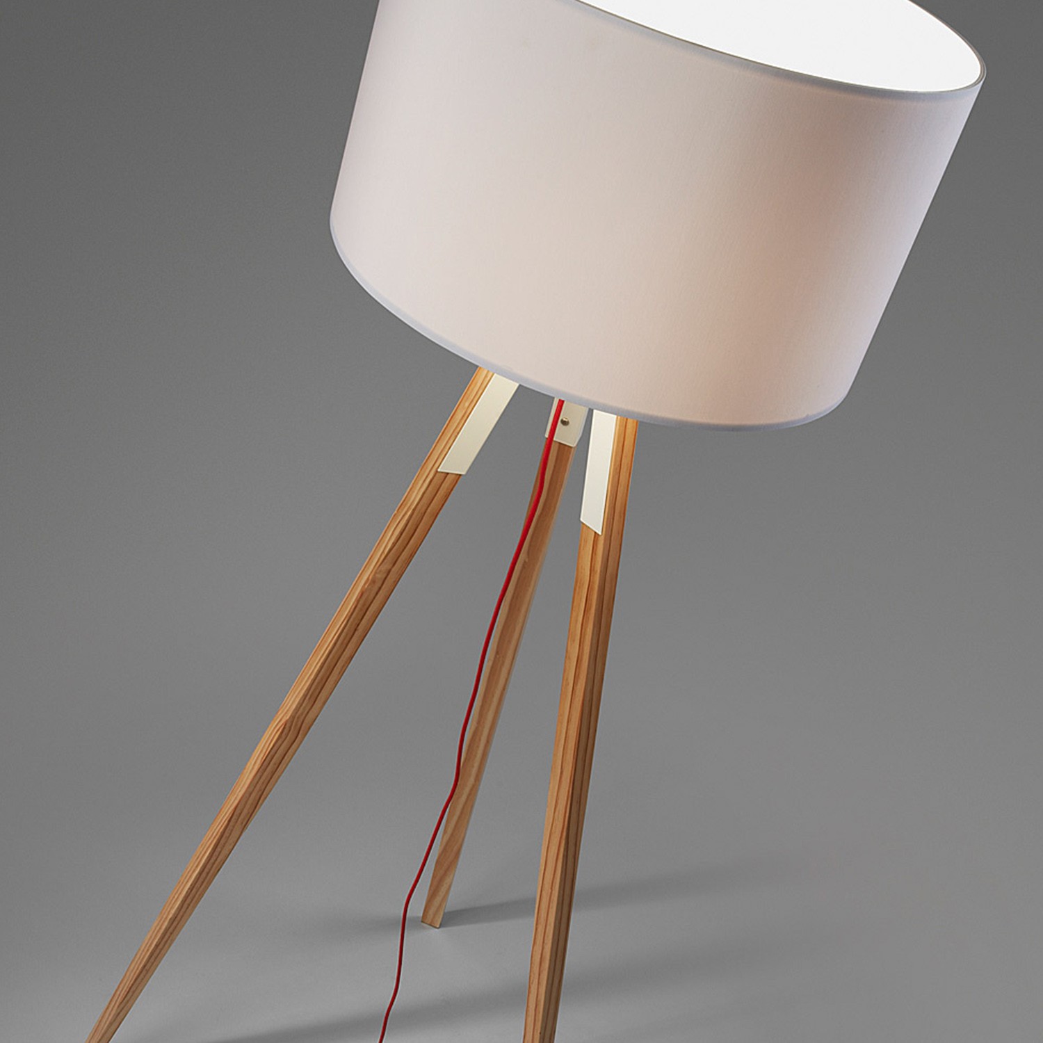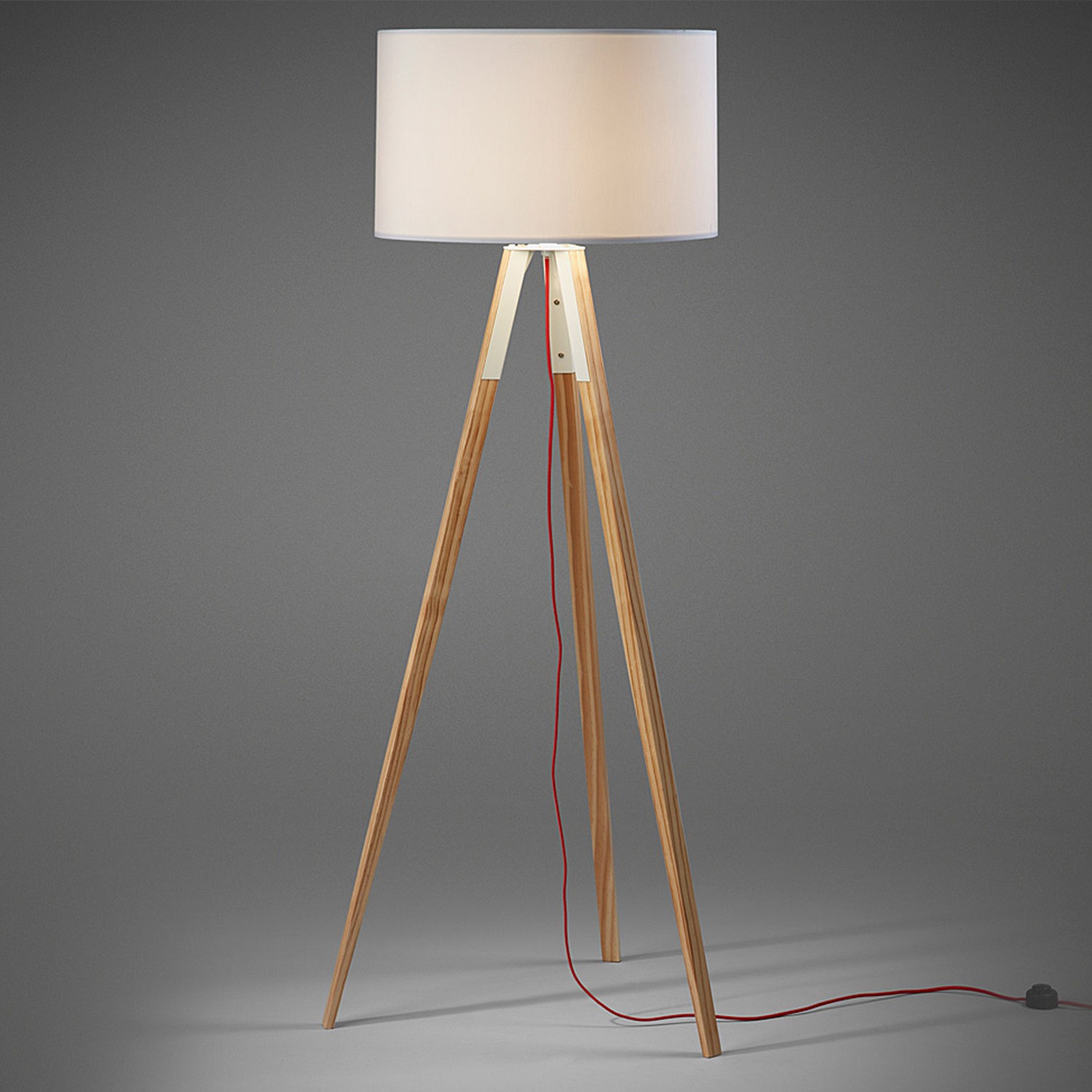 Lámpara de pie que se sostiene con tres patas fabricadas en madera natural maciza y de gran calidad. Su pantalla circular está fabricada en rígida tela blanca resistente y fácil de limpiar. La lámpara de pie UZAGI es fantástica para un ambiente que quiera dar sensación de amplitud y calidez. Tu salón, comedor o sala de estar adquirirán un toque único con este elemento de diseño actual. De marcado estilo nórdico este modelo te adentrará en la naturaleza gracias al olor y el tacto de la madera natural. Su cable rojo da el toque diferenciador a la lámpara de pie UZAGI respecto a los demás modelos del mercado. La encontrarás disponible en varios colores y acabados.
