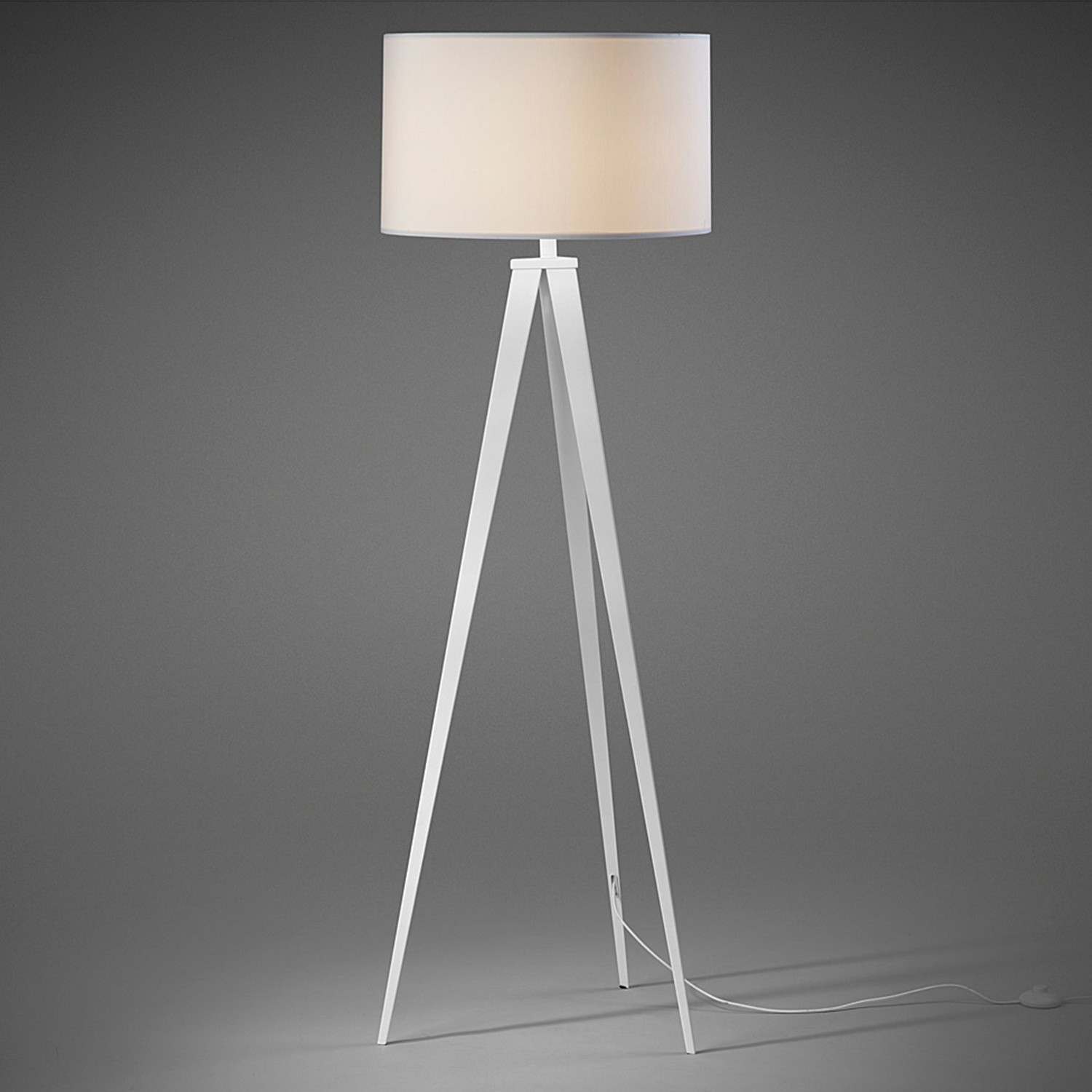 Lámpara de pie UZAGI fabricada en metal blanco y con pantalla de tela también blanca. Al estar recubierta su estructura con Epoxy, la convierte en una lámpara extremadamente resistente ante cualquier rozadura y de muy fácil limpieza. La podrás colocar en cualquier estancia independientemente de los colores que predominen ya que, al ser absolutamente blanca, combina perfectamente. Sus tres patas en forma de trípode le dan un aire muy moderno. La tienes disponible en varios colores.
