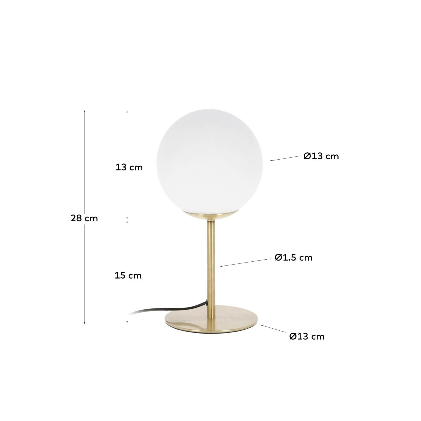 Lámpara de sobremesa EDDIE con pantalla redonda de cristal y estructura de metal en acabado latón. Medidas:  Medida alto: 28 cm. Medida ancho: 13 cm. Medida profundo: 13 cm.