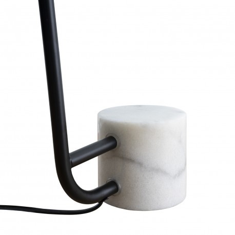 Está formada por una preciosa base cilíndrica de mármol blanco y una pantalla metálica en color negro, todo ello unido mediante una estructura metálica que, gracias a que permite tener movilidad, podremos colocar el foco de luz en la posición que deseemos.