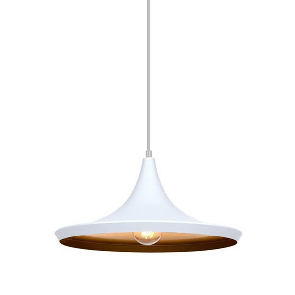 Una fantástica lámpara fabricada en aluminio de color blanco brillo con lacado especial y con un el interior de color dorado de perfecta calidad.