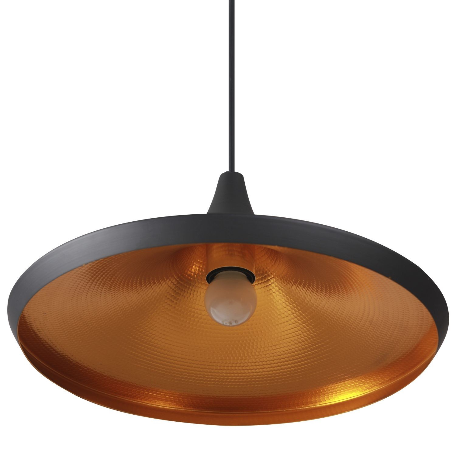 Una fantástica lámpara fabricada en metal acero al carbono de color negro mate con un el interior de color dorado de perfecta calidad.