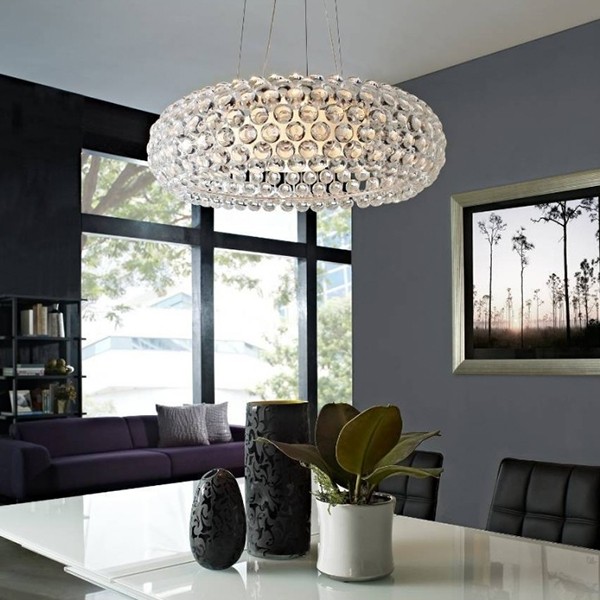 Exquisita, radiante y refinada, la lámpara de suspensión BOCHE es una fusión perfecta de esferas que forman un único cuerpo y se mimetizan con el ambiente gracias a su acabado de plástico transparente.