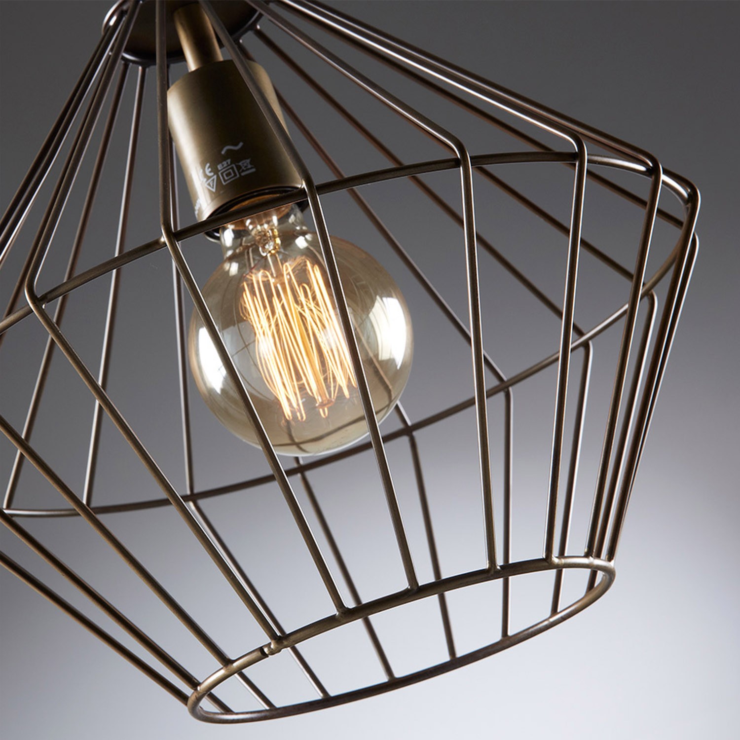Está formada por una pantalla diseñada mediante varillas metálicas terminadas en color negro. Su forma se asemeja a la de un diamante, una de las mejores piedras preciosas del mercado, por lo tanto, la lámpara no podía ser menos. Desde el techo y hasta la pantalla, encontramos un cable de suspensión, también de color negro.