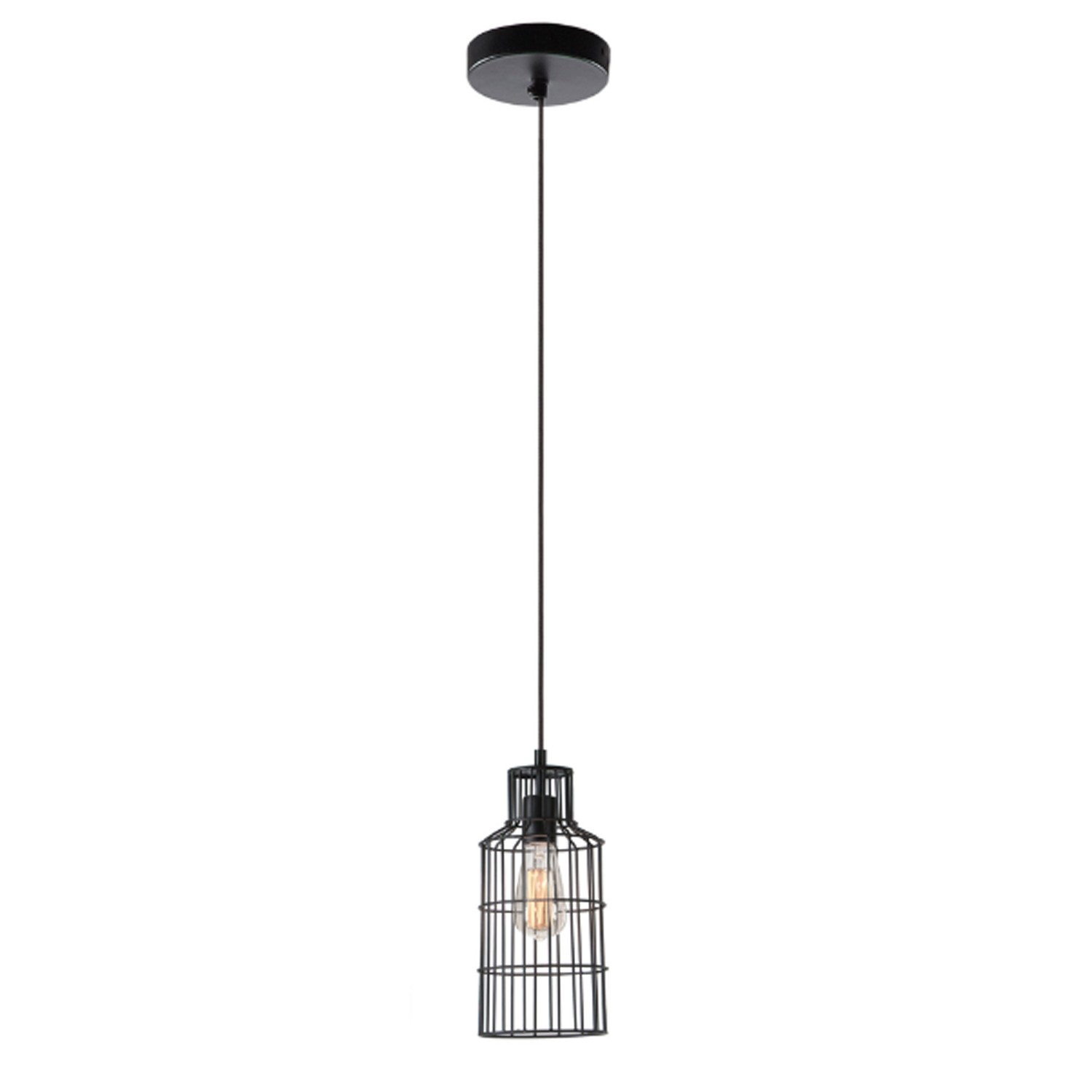 En este caso hablamos de la lámpara de suspensión DUBLIN, un modelo de suspensión diseñado mediante la unión de varillas de metal en color negro, asemejándose a la forma de una jaula. En su interior, encontramos un portalámparas del mismo color, donde colocaremos la bombilla y del que surge el cable que permitirá colgarlo del techo.