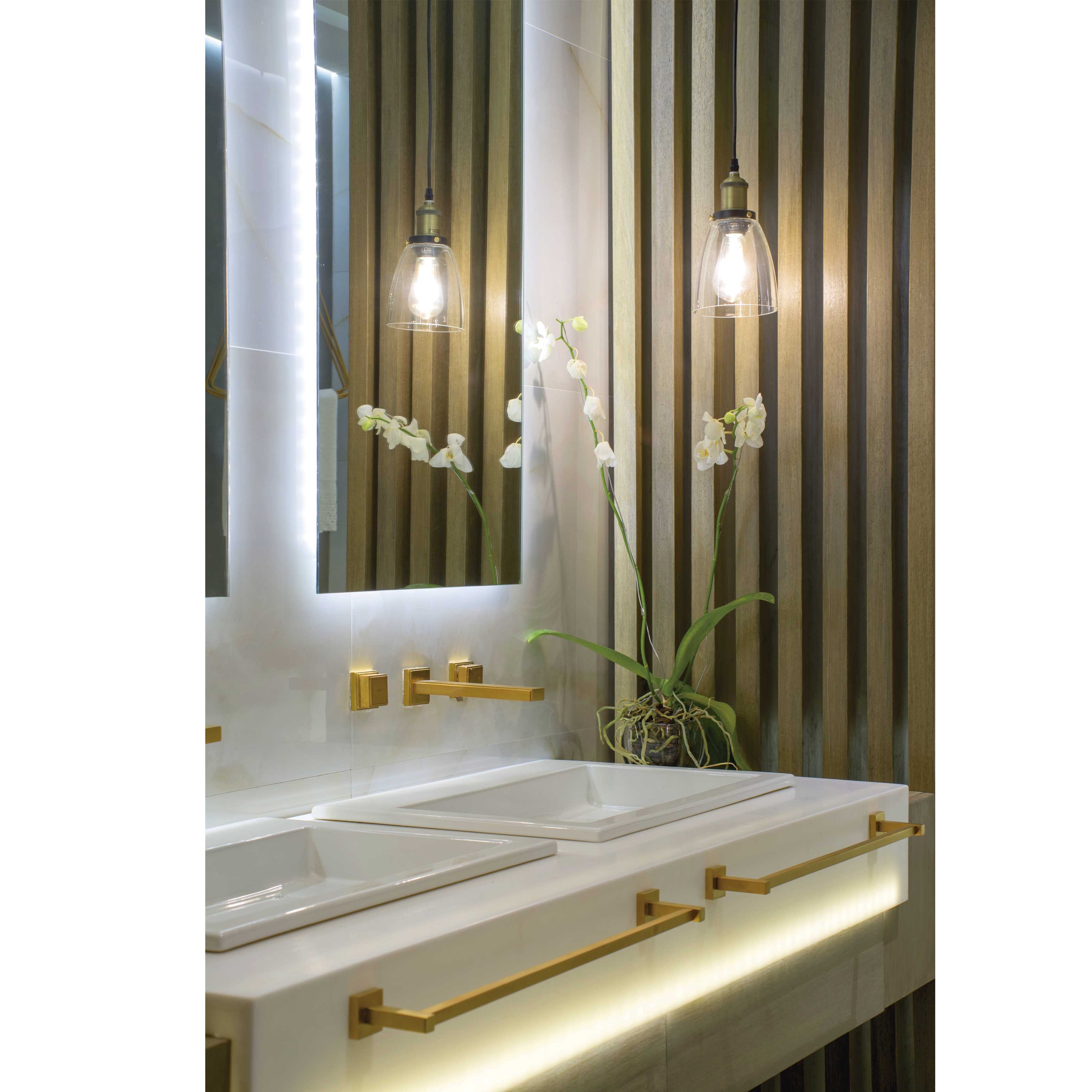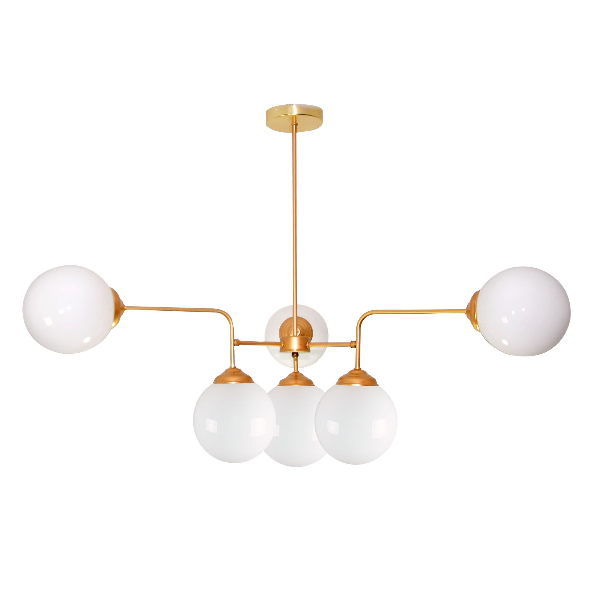 Lámpara de suspensión EMILI fabricada en metal latón con pantalla de cristal transparente.