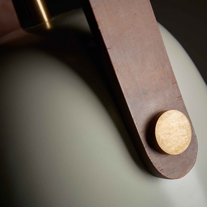 Se trata de la lámpara de suspensión REUS. Hablamos de un modelo de estilo industrial en el que encontramos una pantalla metálica pintada en color beige. Esta pantalla incorpora una asa realizada en madera, y que es perfecta para graduar la orientación de la luz.