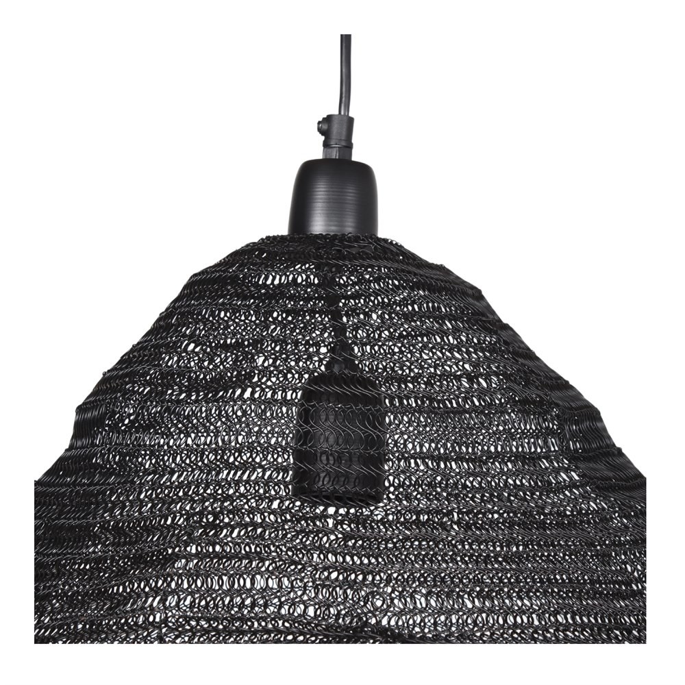 Está diseñada y fabricada en su totalidad en estructura en forma de jaula en rejilla de metal acabado en negro, en forma de malla, que la hace un producto único y original.