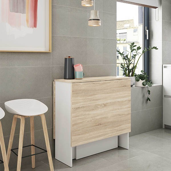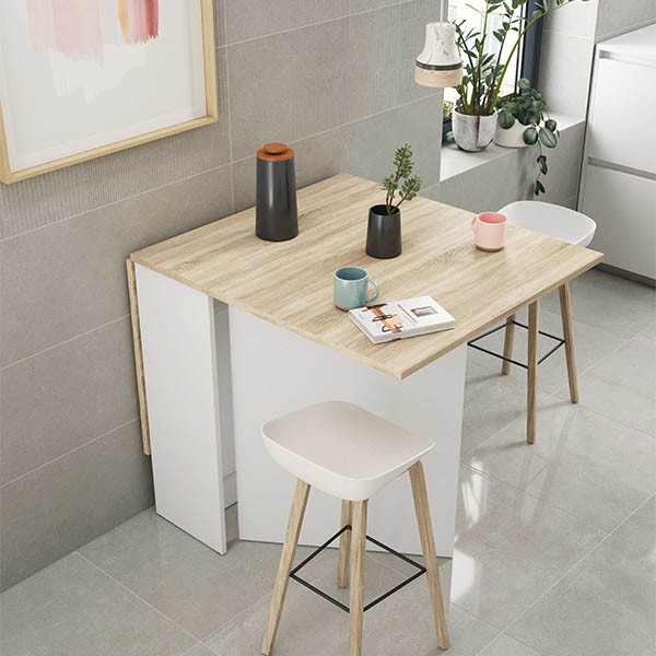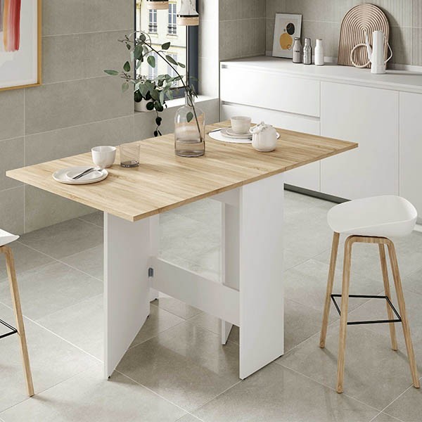 Mesa abatible AILE 31(86/140)x77 melamina Roble y Blanco