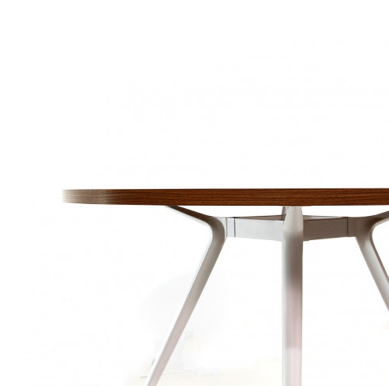 El tablero se encuentra fabricado en melamina de alta calidad EGGER con acabado en madera de nogal. Para la estructura de cuatro patas se ha empleado metal acabado en color blanco. El diseño de las patas tiene unas originales curvas que le dan un toque diferente y actual.