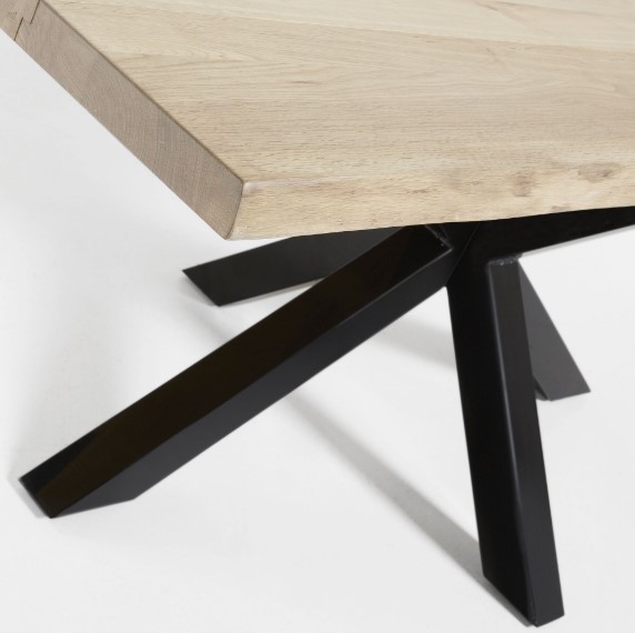 Te recomendamos adquirir la mesa ARYA, una mesa de comedor formada por un sobre rectangular, diseñado en madera de roble blanqueado, y que se sostiene por cuatro patas unidas en una sola, realizadas en metal pintado en color negro. Resulta ser la mesa perfecta para ambientes nórdicos y rústicos.