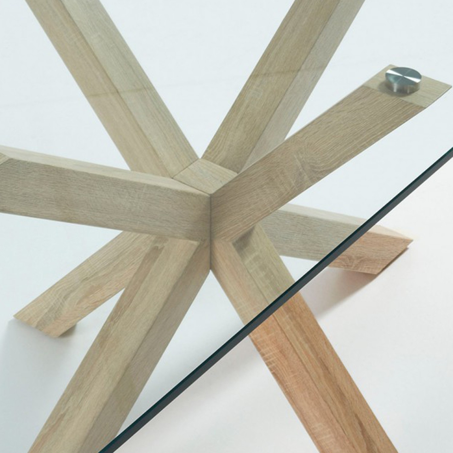 Se trata de una fabulosa mesa, de 180x100 cm con un sobre de cristal transparente, todo ello sostenido mediante cuatro pies de acero chapado todo ello acabado en color natural.