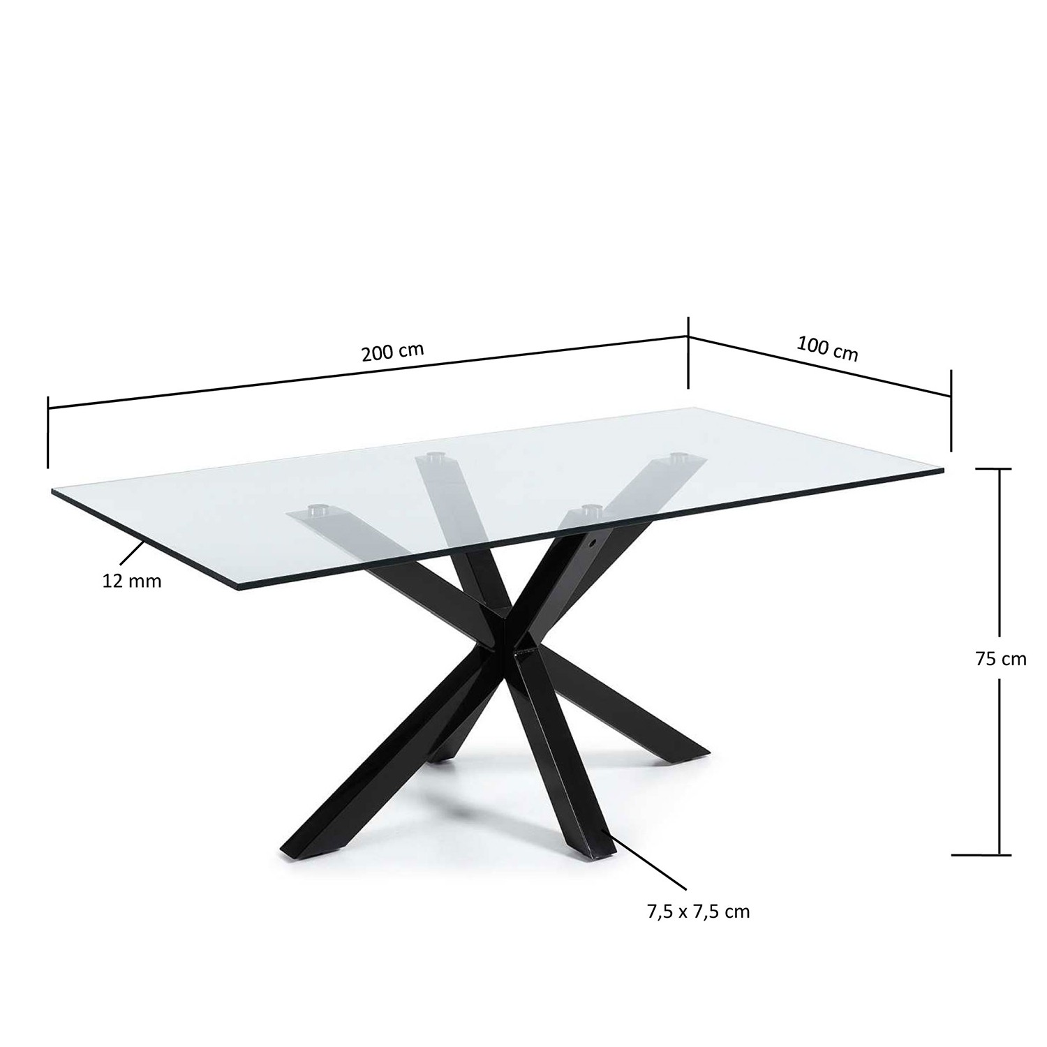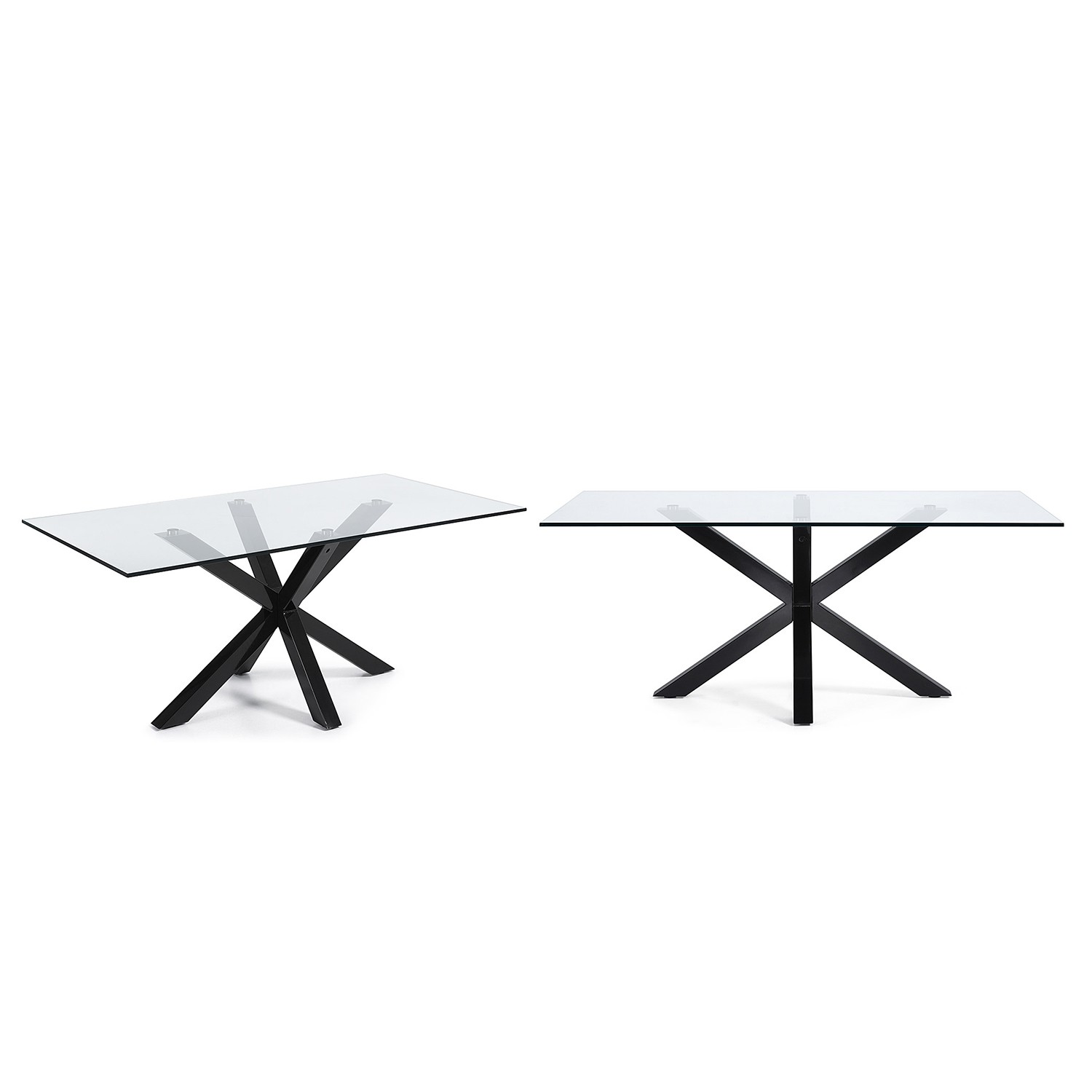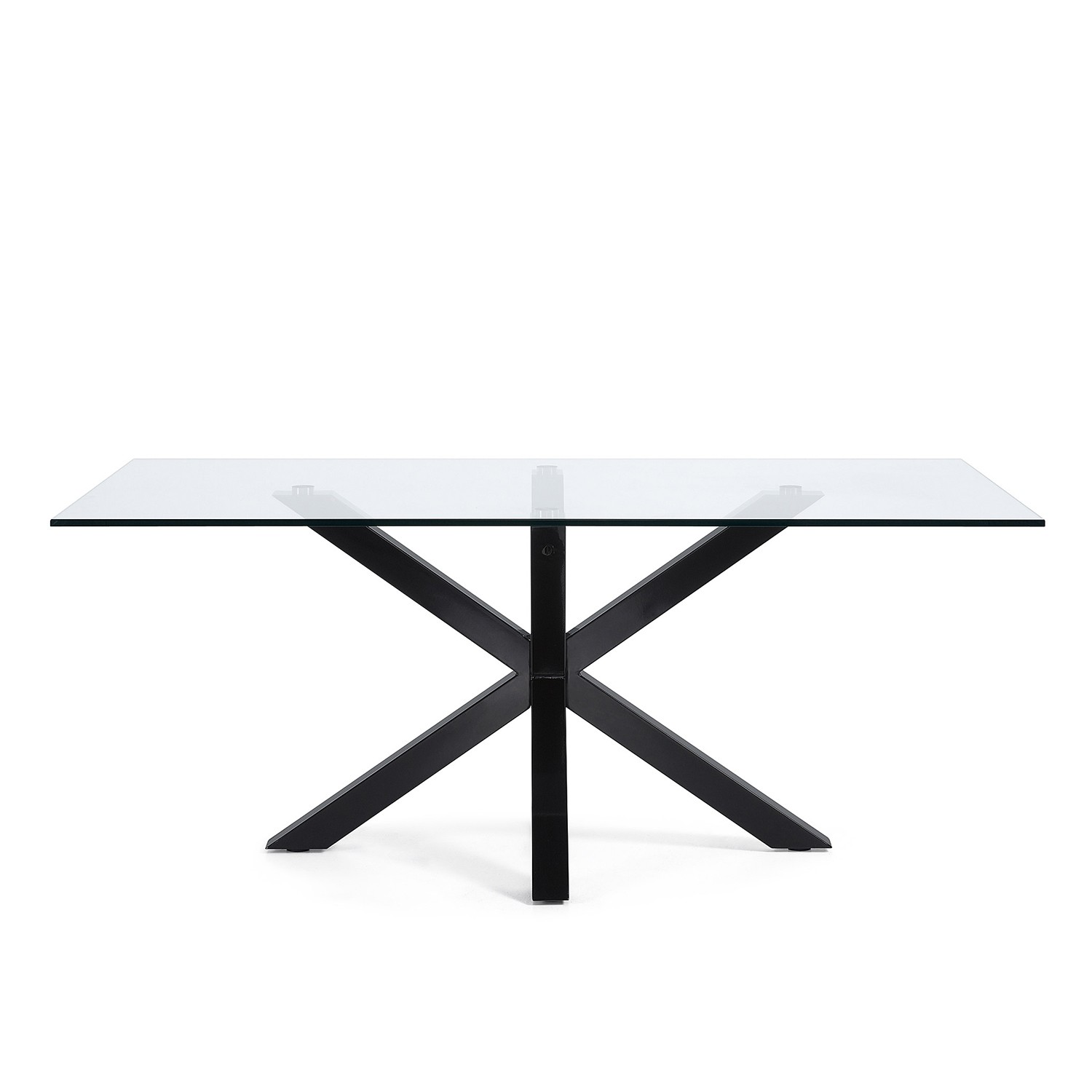 Mesa ARYA de cristal templado con estructura de acero el cual ha sido pintado en epoxy de color negro.