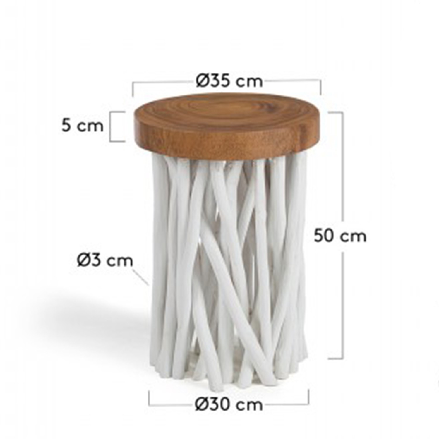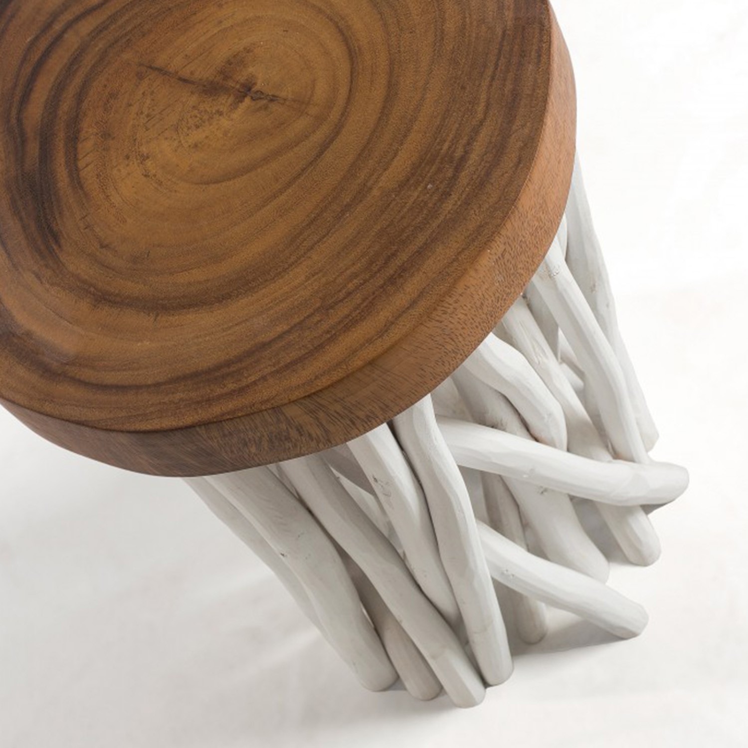Pues así es la mesa auxiliar BEIRUT, un modelo ideal para hogares de estilo rústico, formado por un sobre circular, en madera de mungur natural. Este sobre se sostiene gracias a una estructura formada por un entramado de ramas diseñadas en madera tropical, con un bonito acabado en color blanco.