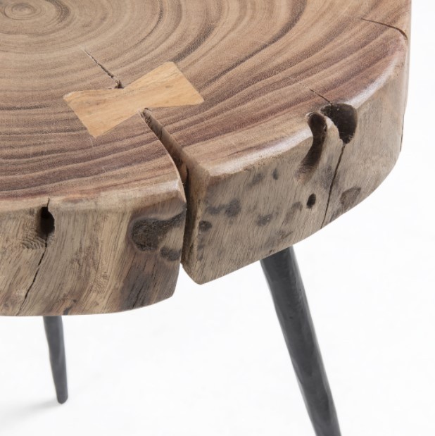 Y es que nada mejor que la mesa auxiliar GABPAU, un modelo que consta de un sobre que toma la forma de un corte horizontal del tronco de un árbol realizado en madera de acacia natural a la que le acompañan tres patas de metal en color negro. Resulta una interesante opción completarla con una buena iluminación o con atractivos objetos decorativos que la completen.