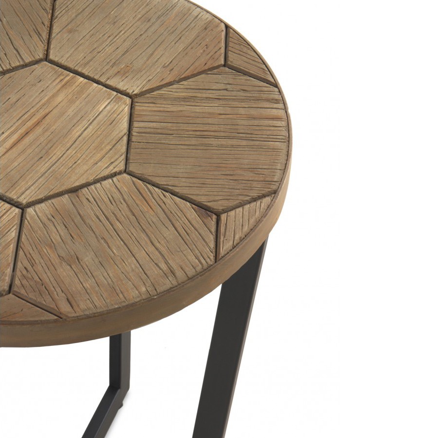 Nos encontramos con esta singular mesa de estilo rústico con detalles industriales. La exótica mesa auxiliar HONEY.