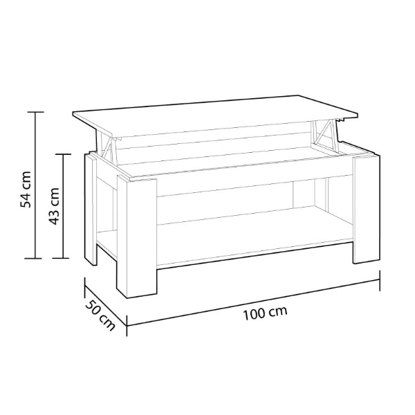 Nuestra mesa dispone de varias prestaciones. En primer lugar es una mesa de centro perfecta para encajar en tu salón o sala de estar, pero gracias a su sencillo mecanismo de elevación es ideal para transformarla en mesa de comedor en la que disfrutar desde tu sofá. También nos facilita espacio para almacenamiento, gracias a su balda instalada en la parte inferior y al cajón bajo la tapa de esta.