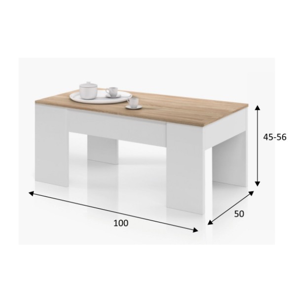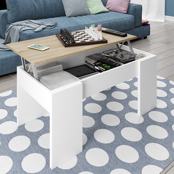 La mesa de centro WILLOW 100x50 es una mesa donde su parte superior se eleva con un sencillo movimiento, y permite hacer más alta su estructura y almacenar objetos debajo.