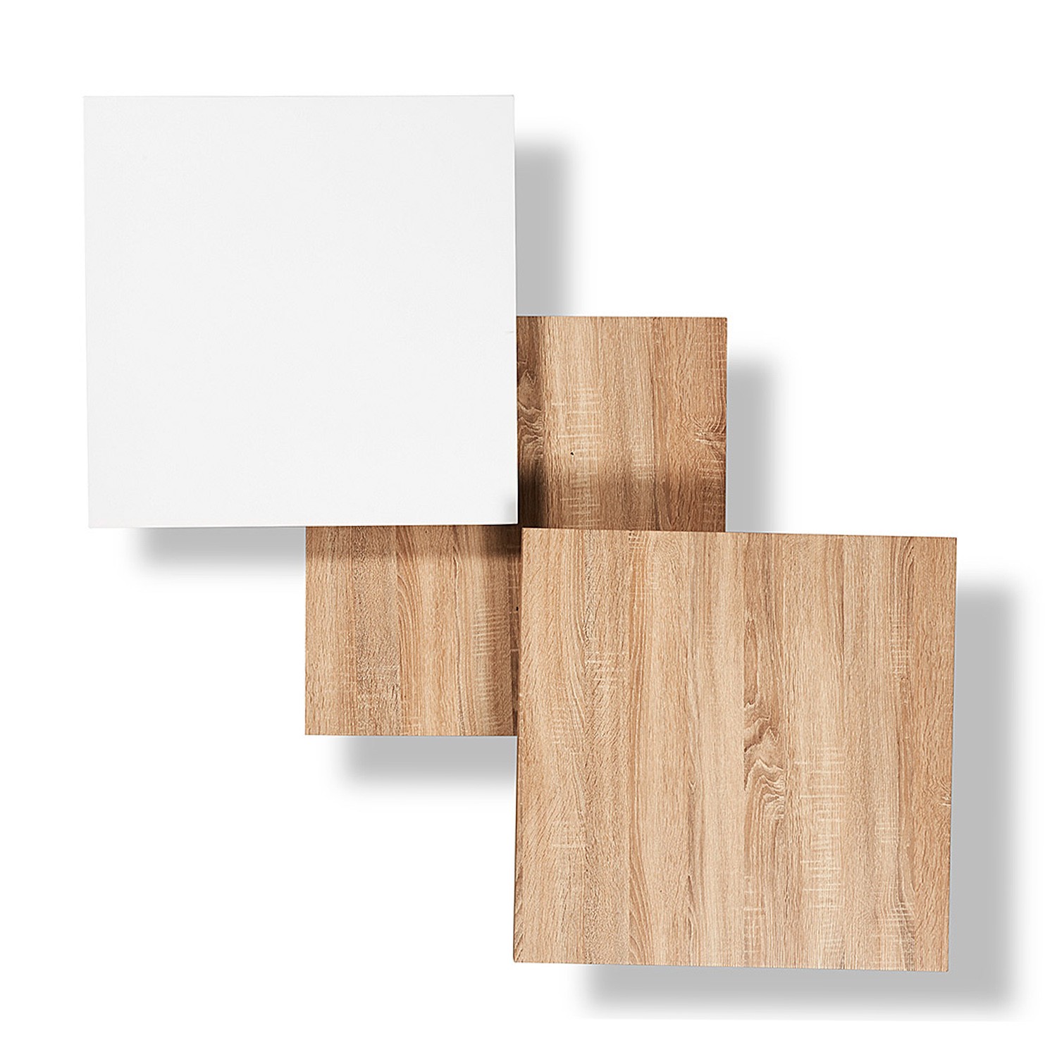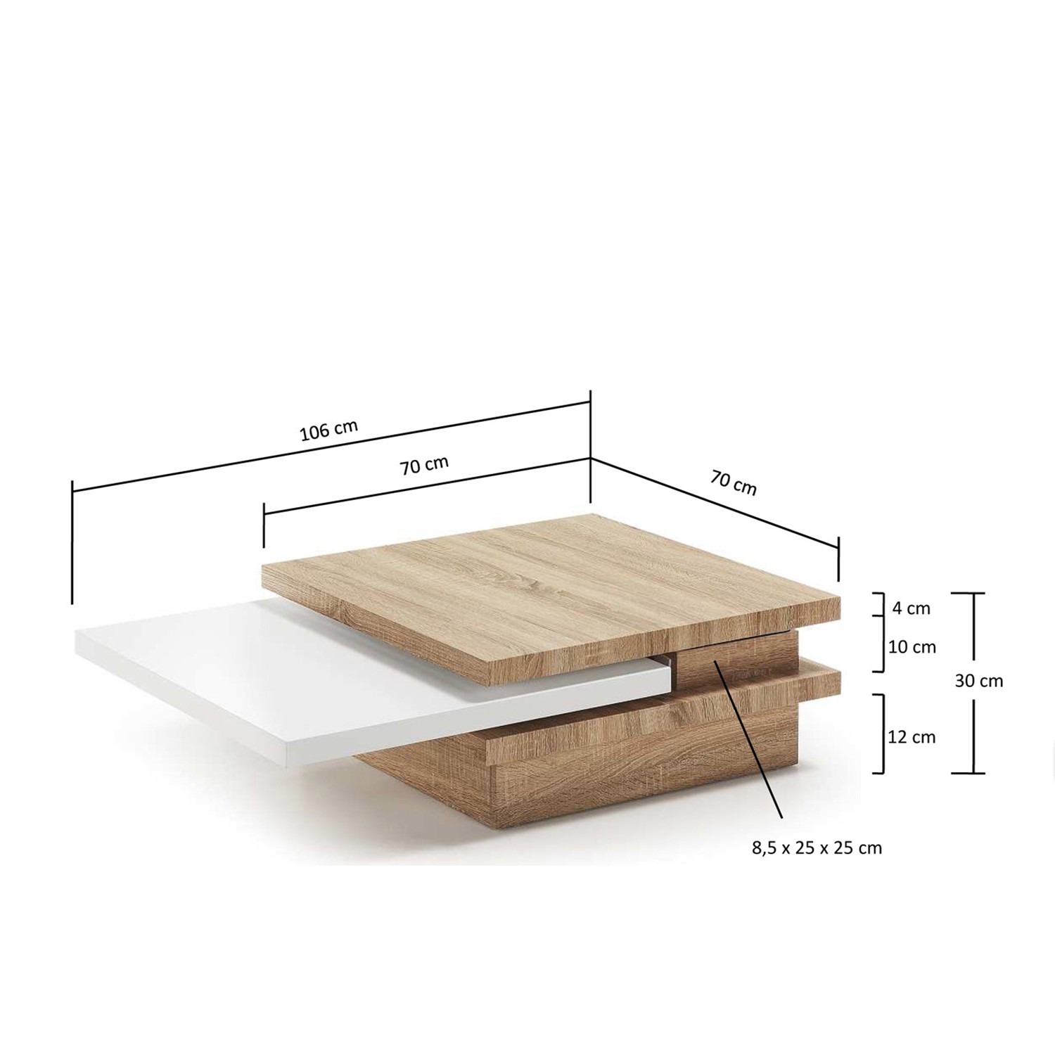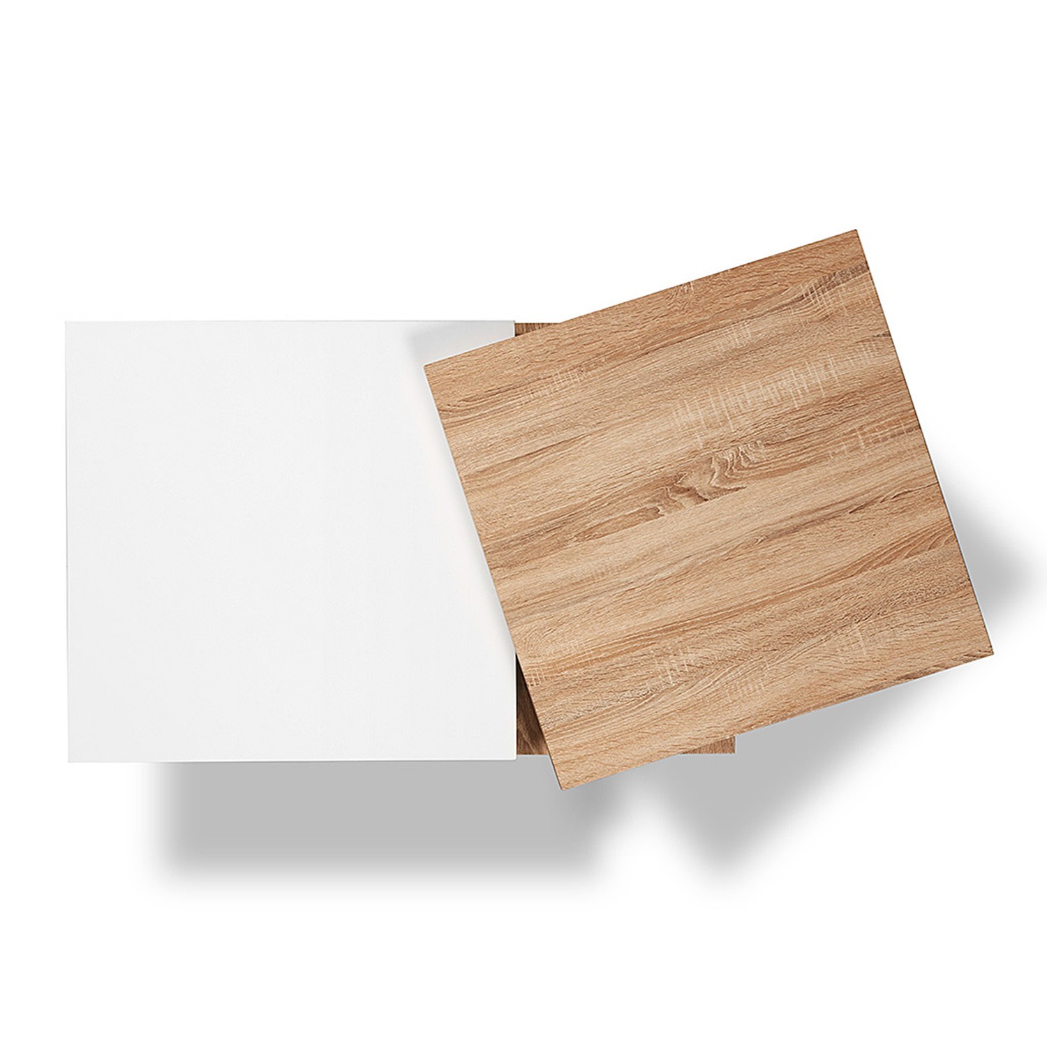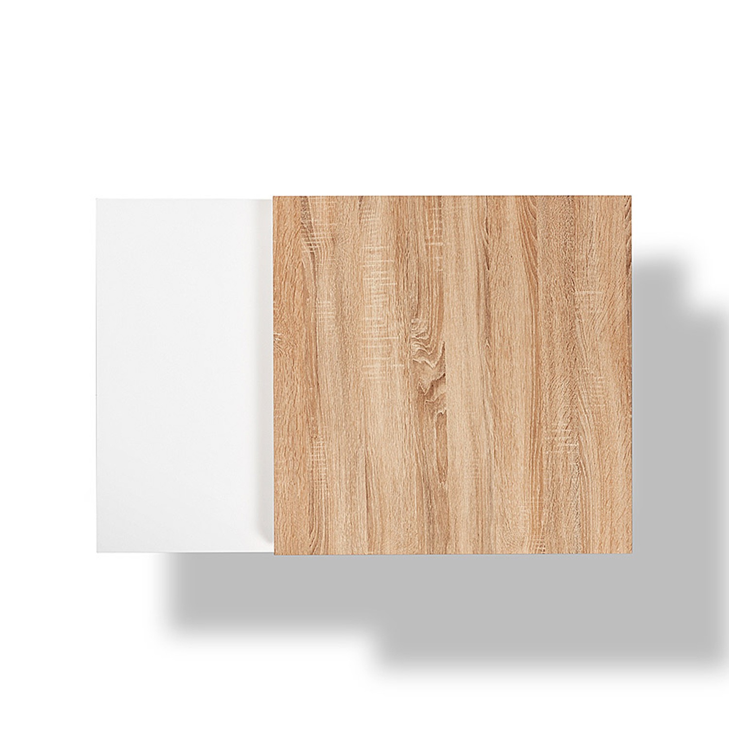 La mesa, está hecha en melamina color roble natural y tablero de fibra de madera lacado blanco mate, ideal para combinar con cualquier otro tipo de acabado que tengáis en casa.