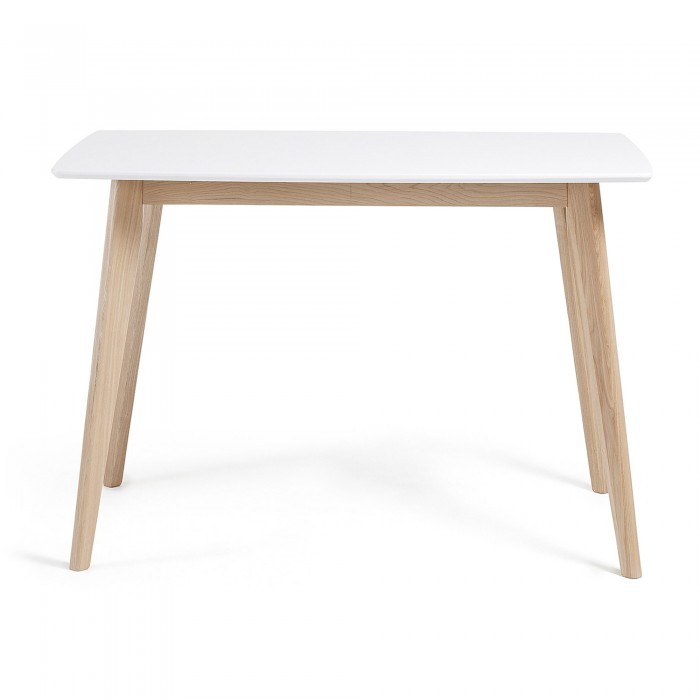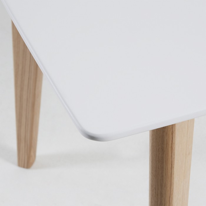 La elegida, en esta ocasión, es la mesa de comedor ARVA. Se trata del pequeño de los dos modelos que ARVA tiene disponibles. Su forma rectangular consta de un sobre lacado en color blanco mate y viene acompañado por una estructura de madera maciza en color natural que lo sostiene.
