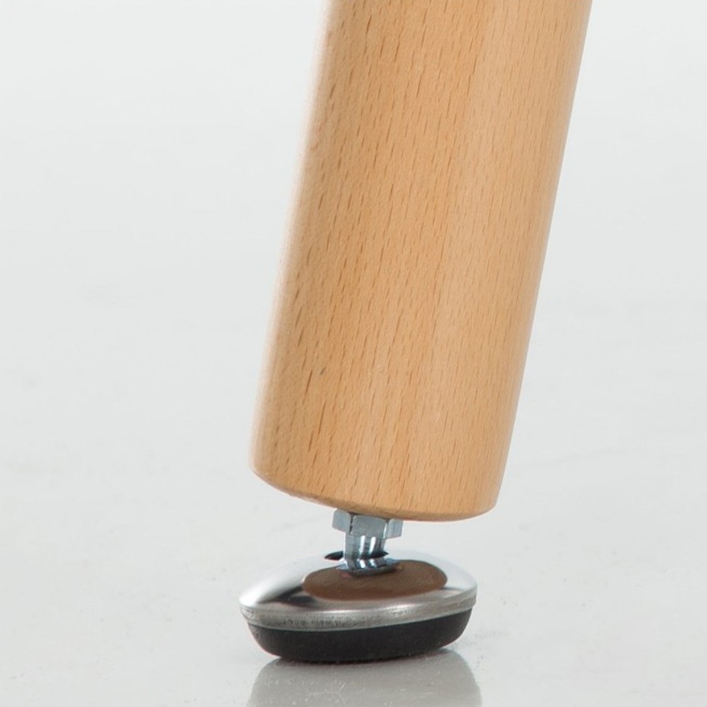Se caracteriza por ser una mesa resistente fabricada en sobre lacado de MDF con acabado lacado blanco, una superficie resistente que soporta el uso diario. Y cuatro patas de madera natural de haya con regulación de la altura de estas, perfecta para la correcta posición de la mesa especialmente para suelos irregulares.