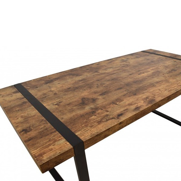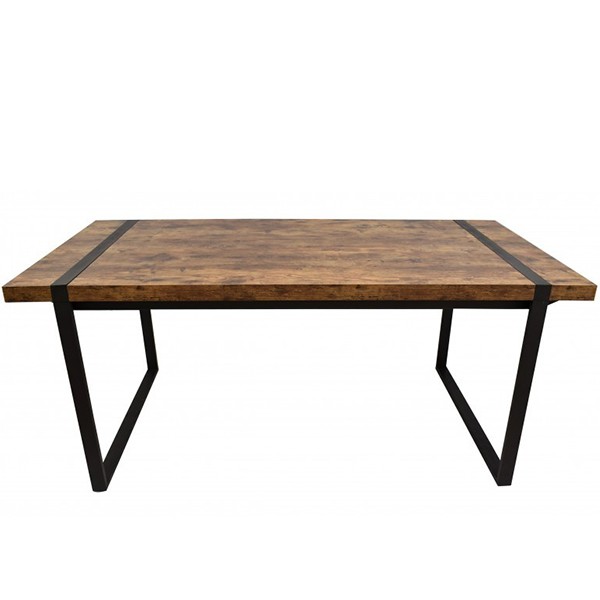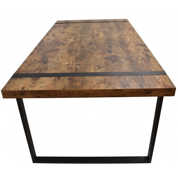 Se trata de un modelo rectangular que mide 180x90 cm, compuesta por una estructura de 2 patas de forma rectangular en metal de color negro, y sobre realizado en DM bilaminado, para una mayor durabilidad, en tonalidad roble oscuro.