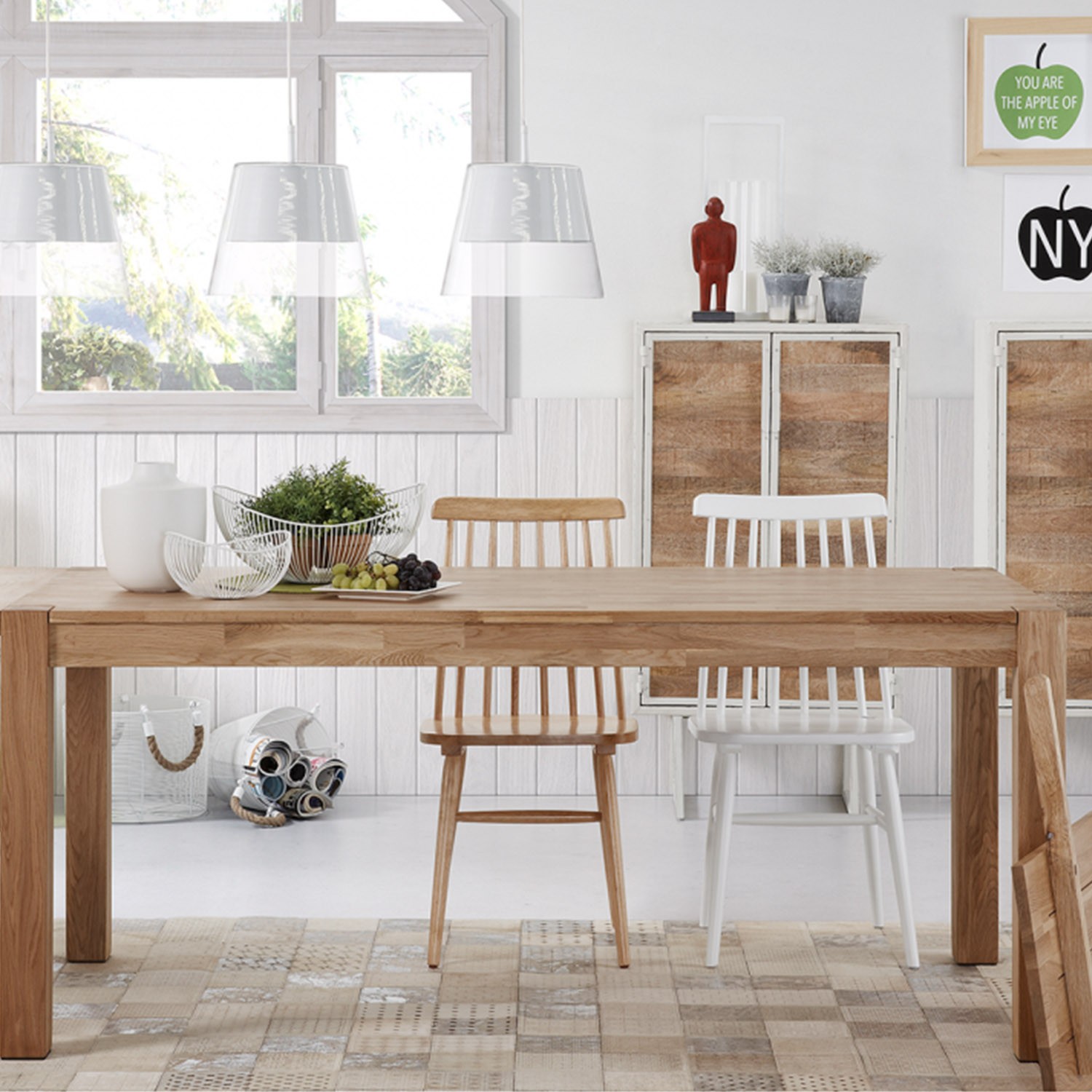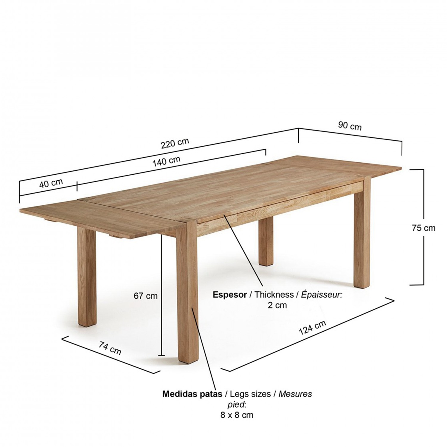 En este caso, mostramos el modelo intermedio, una mesa de comedor extensible que en estado natural mide un metro y cuarenta centímetros y abierta en su totalidad supera los dos metros de longitud. En un claro estilo rústico, se presenta diseñada íntegramente en madera de roble macizo en estado natural.