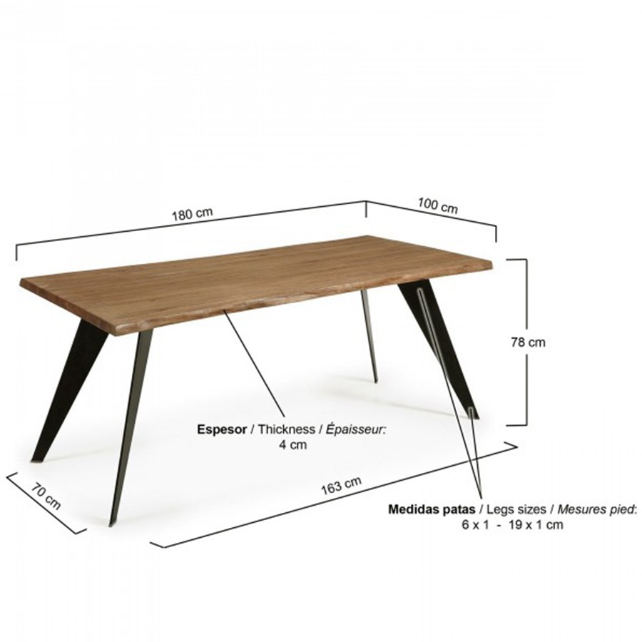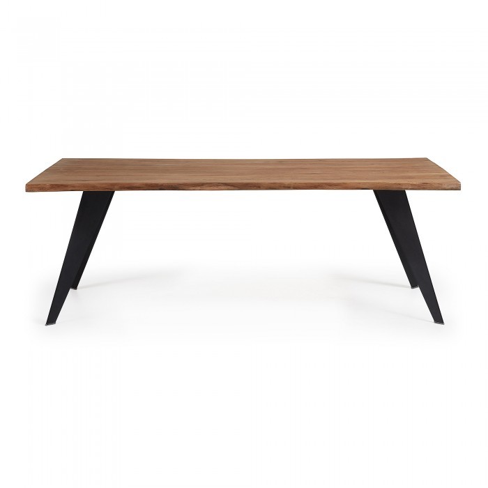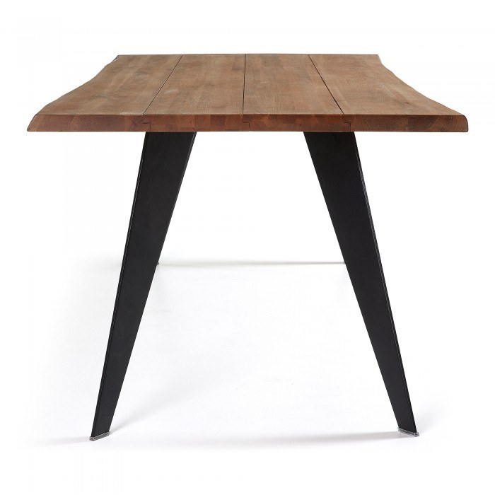 Se trata de un modelo que consta de un sobre rectangular, en forma de tablero, diseñado en madera de roble envejecida. Todo ello se sostiene mediante cuatro patas de original forma, diseñadas en metal, con acabado en color negro gracias a la capa de pintura que han recibido.