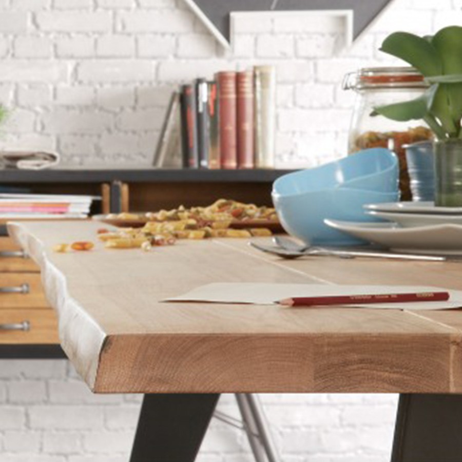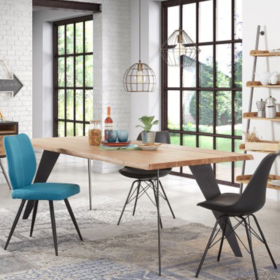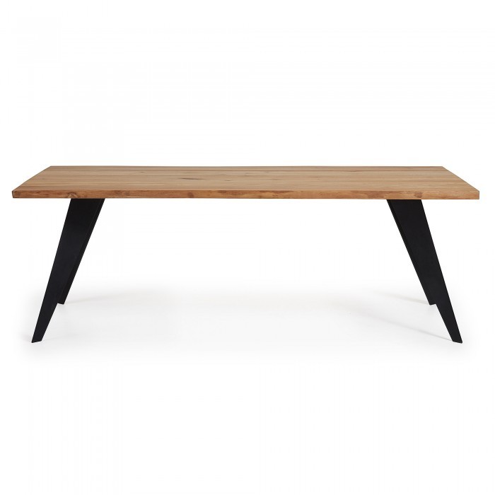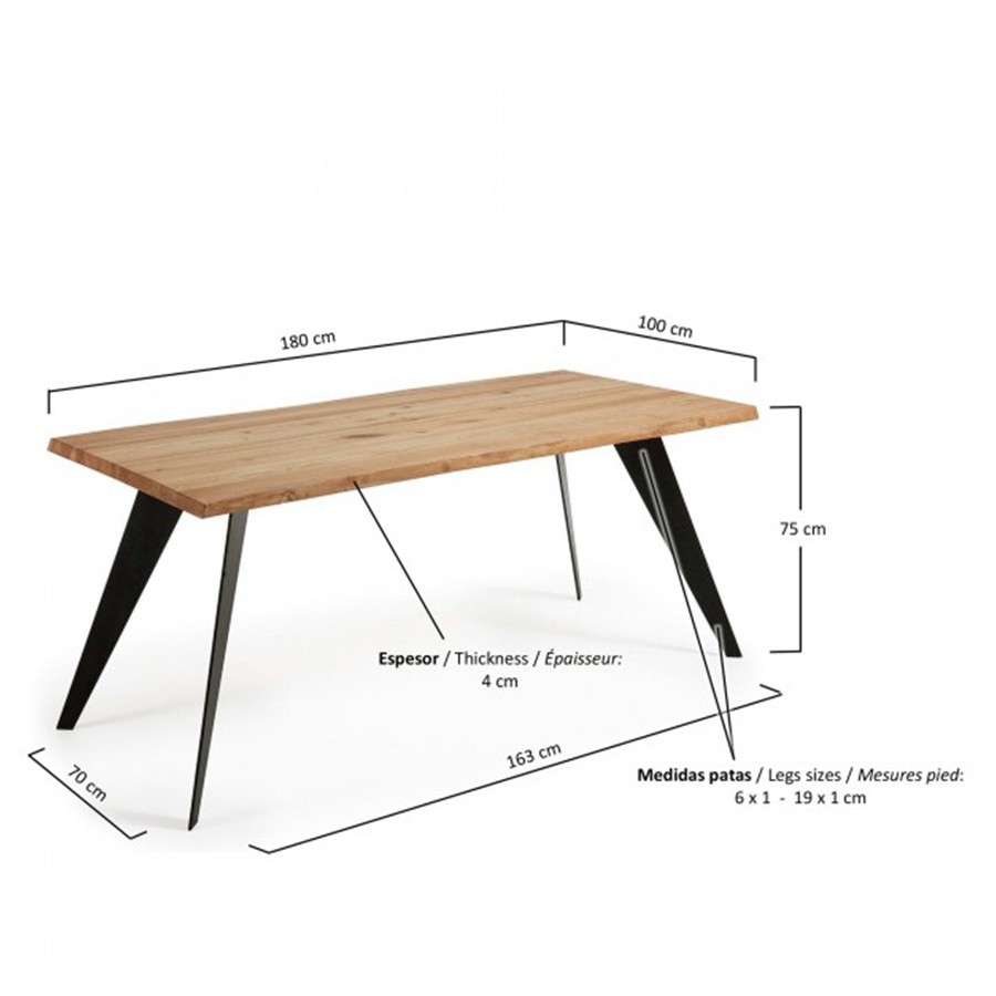 Hablamos en esta ocasión de la mesa de comedor LAMARQ. Una mesa en la que encontramos un tablero rectangular a modo de sobre, diseñado en madera de roble natural con un acabado encerado. También le acompañan cuatro patas que han sido realizadas en acero, un metal resistente, pintadas en epoxy de color negro.