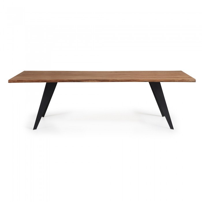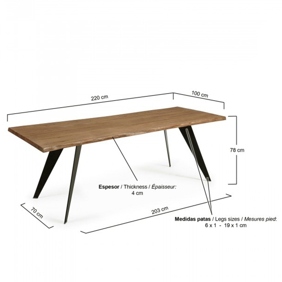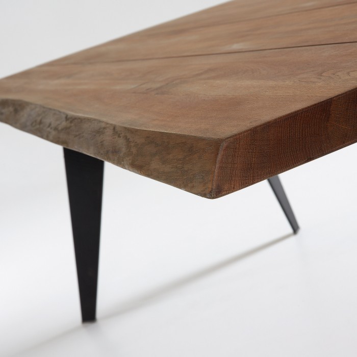 Se trata de un modelo ideal para salones y comedores amplios, debido a su tamaño, superior a dos metros de longitud. Su diseño consta de un sobre diseñado en madera de roble, con un acabado envejecido. Le acompañan cuatro originales patas fabricadas en metal, con un acabado pintado en color negro.