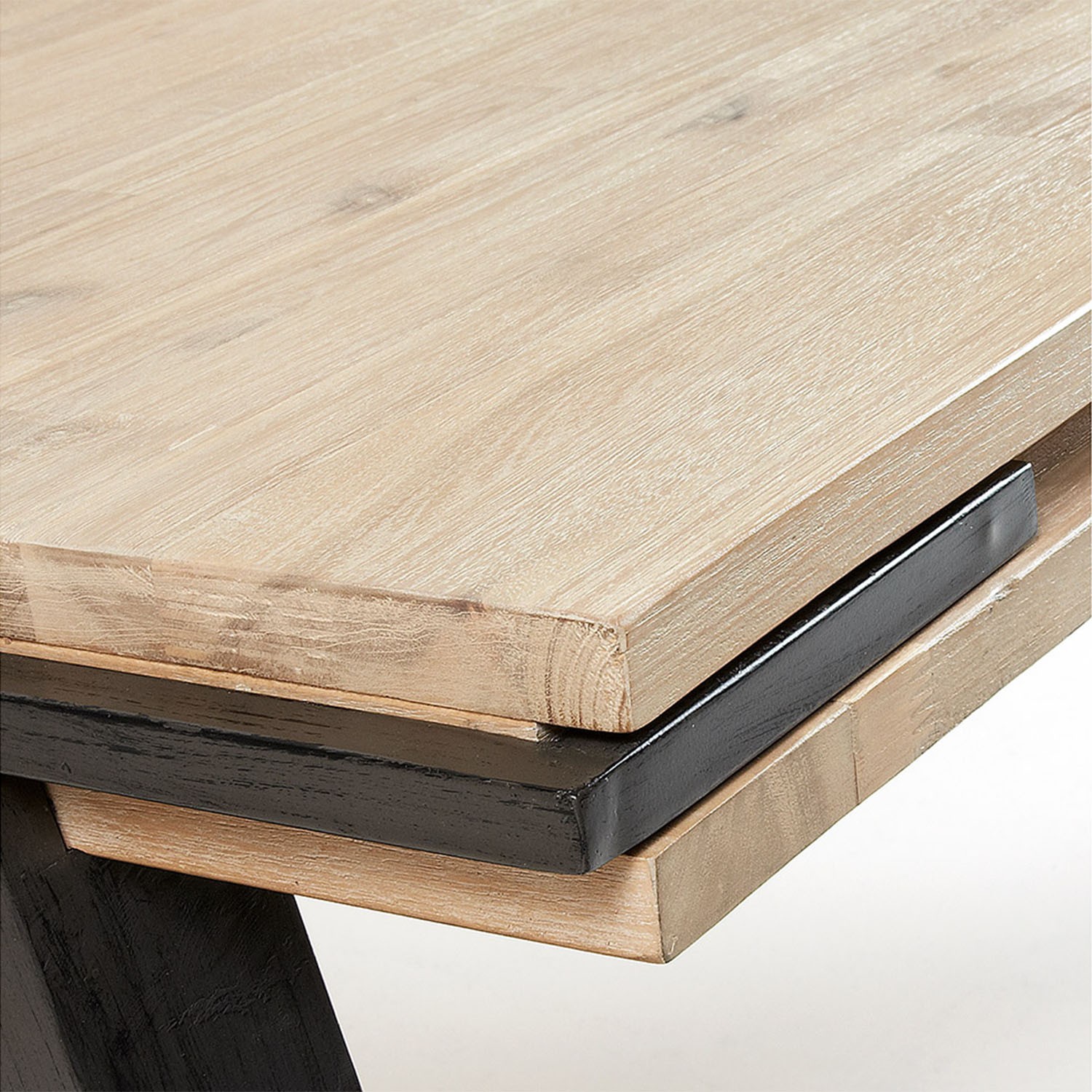 Para ello, un precioso tablero de madera natural de acacia combina a la perfección con una estructura de cuatro patas de metal con pintura envejecida.