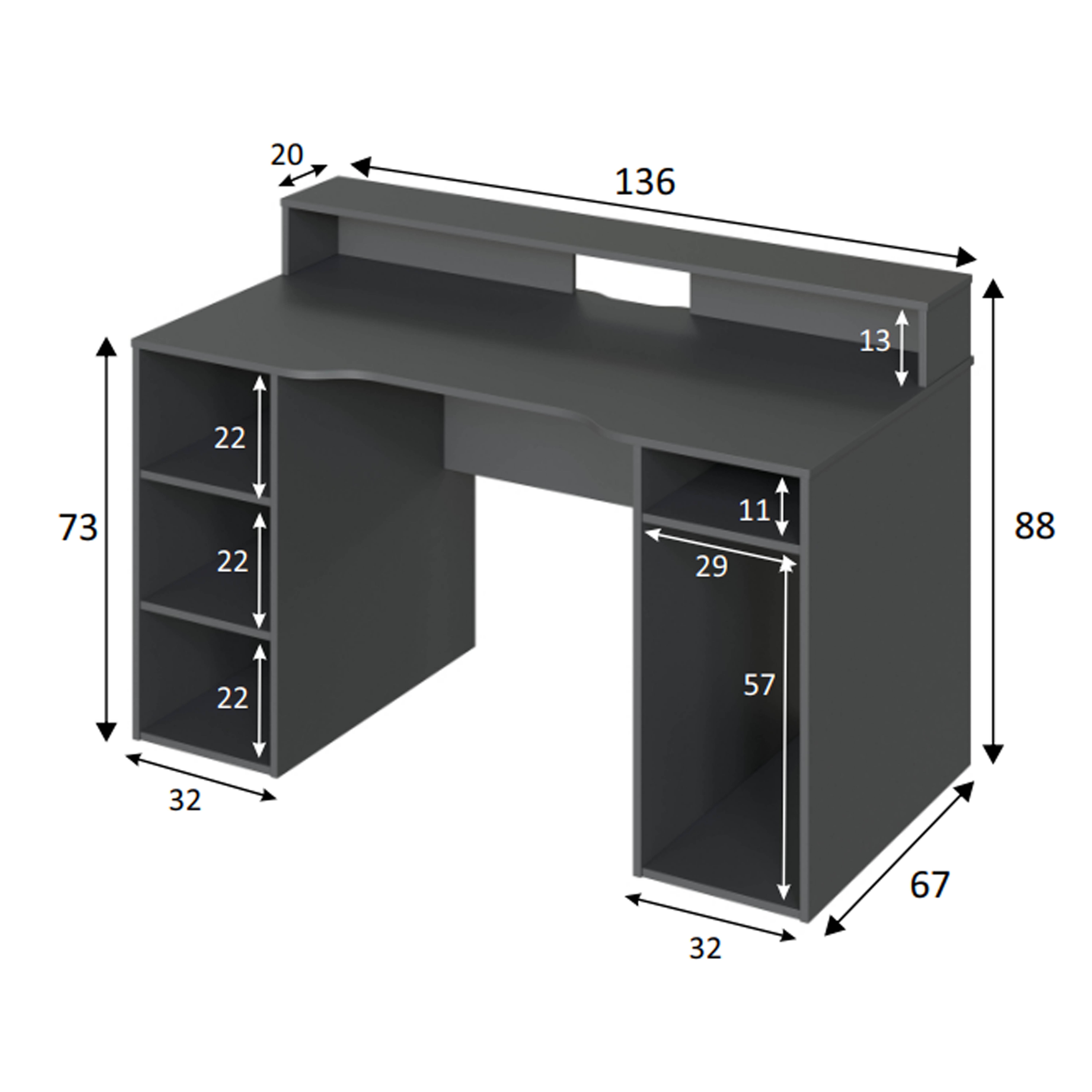 Fabricado en melamina acabada en color antracita, un color que se adapta a cualquier entorno, discreto pero sólido, para proporcionarle a tu habitación gamer un gran carácter.