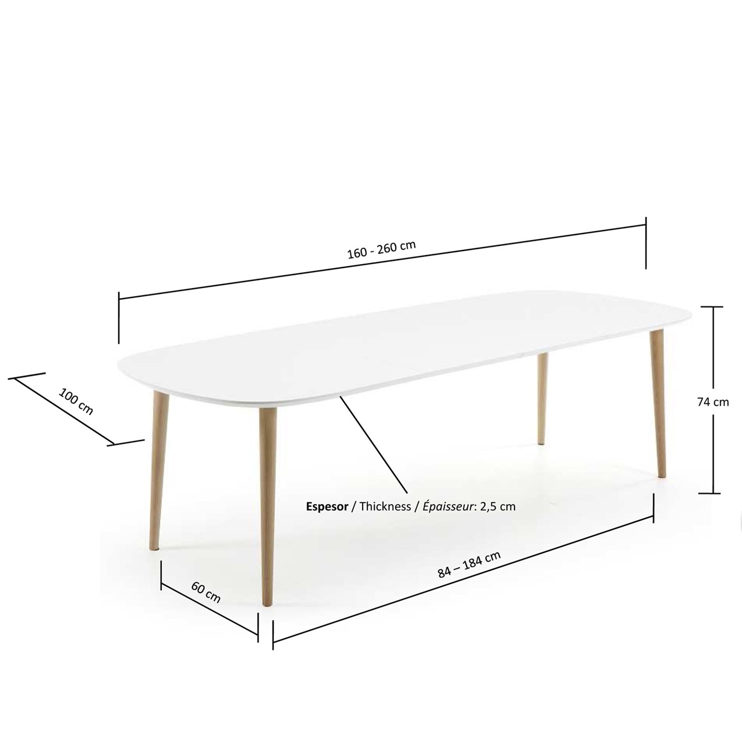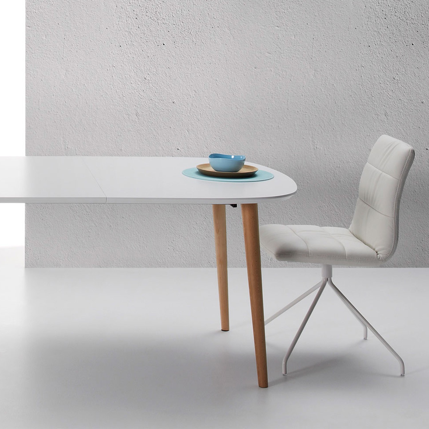 Este modelo, está hecho con un sobre de DM lacado en color blanco, el cual es ideal para sus patas en haya natural barnizadas.