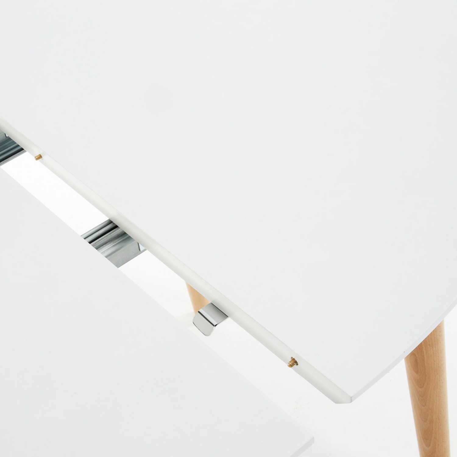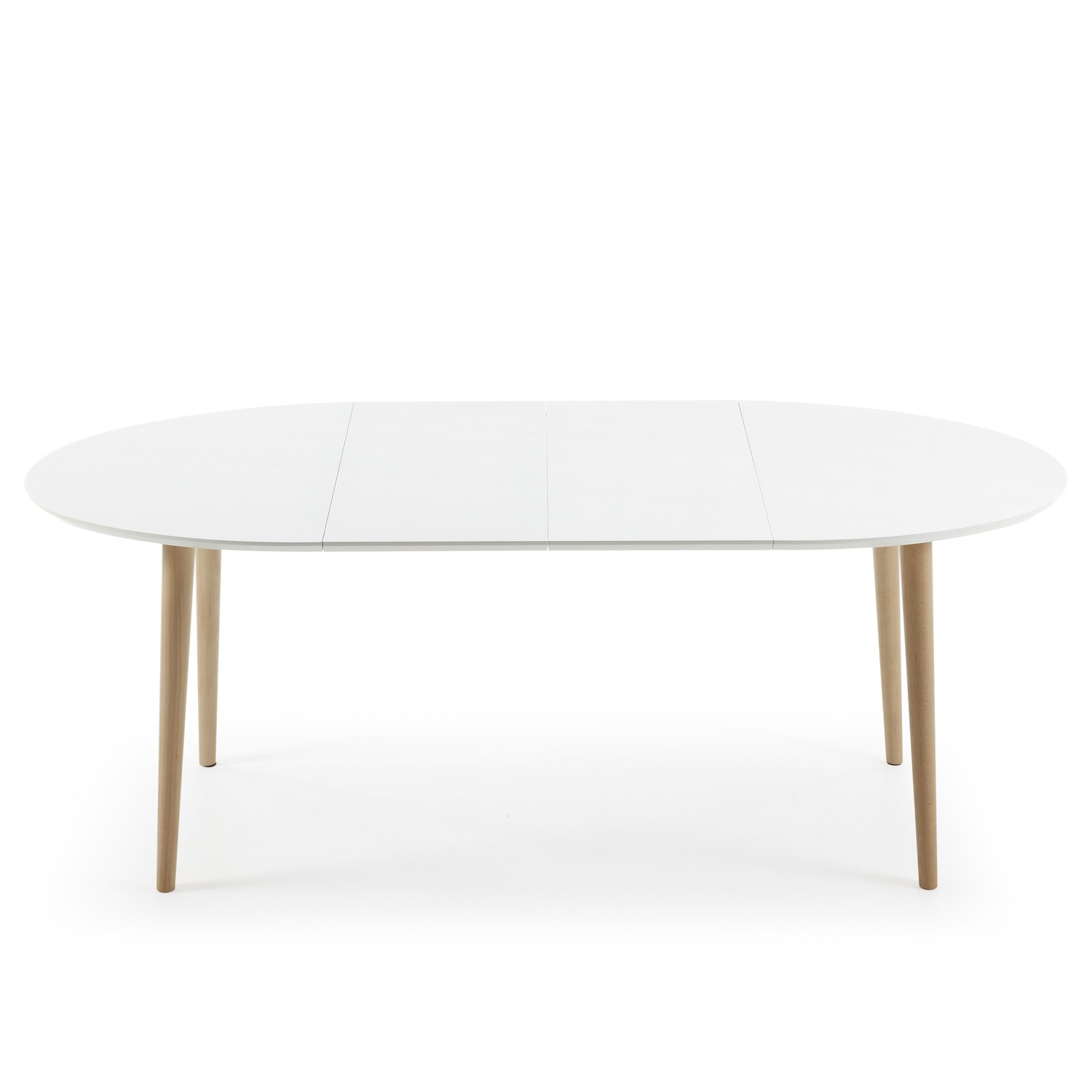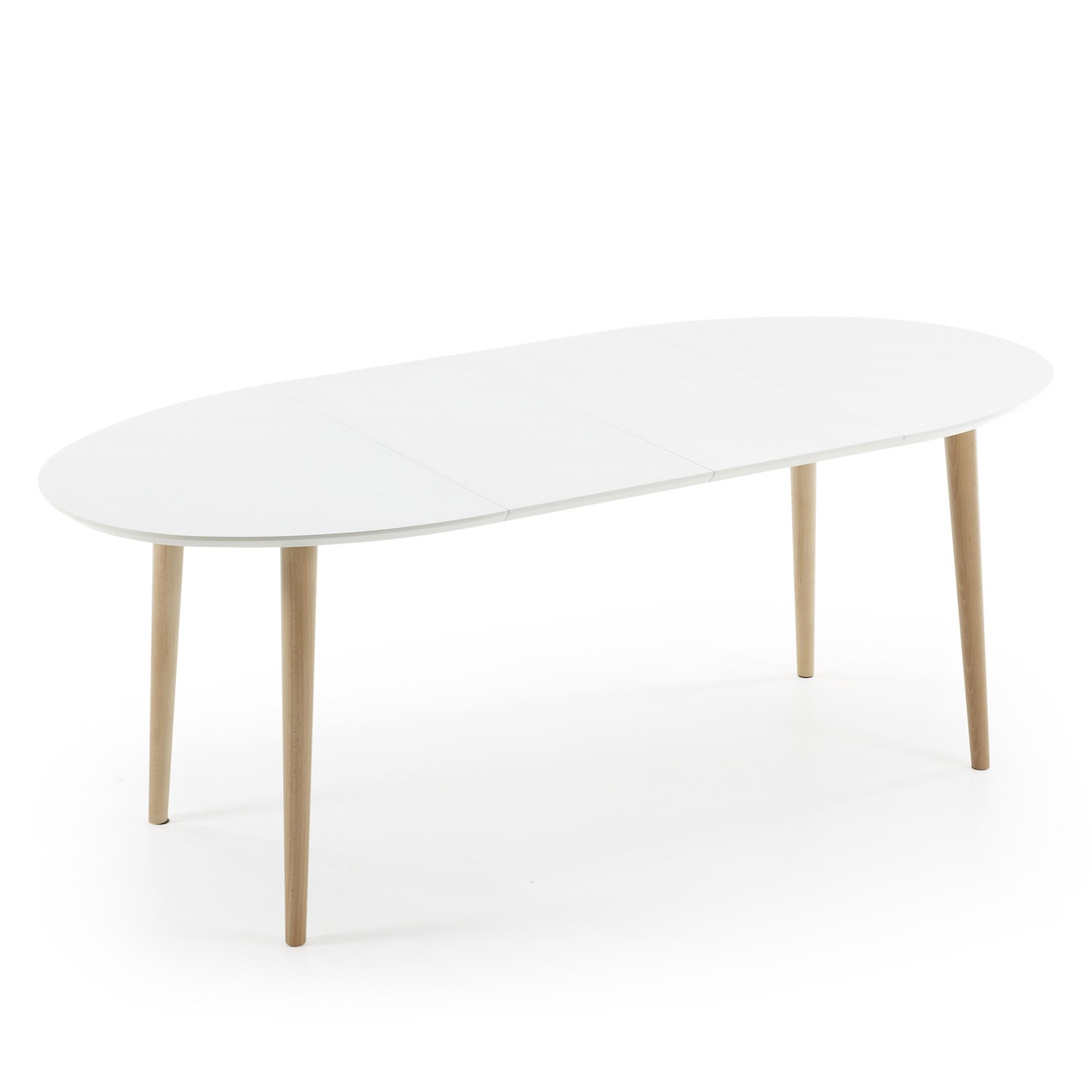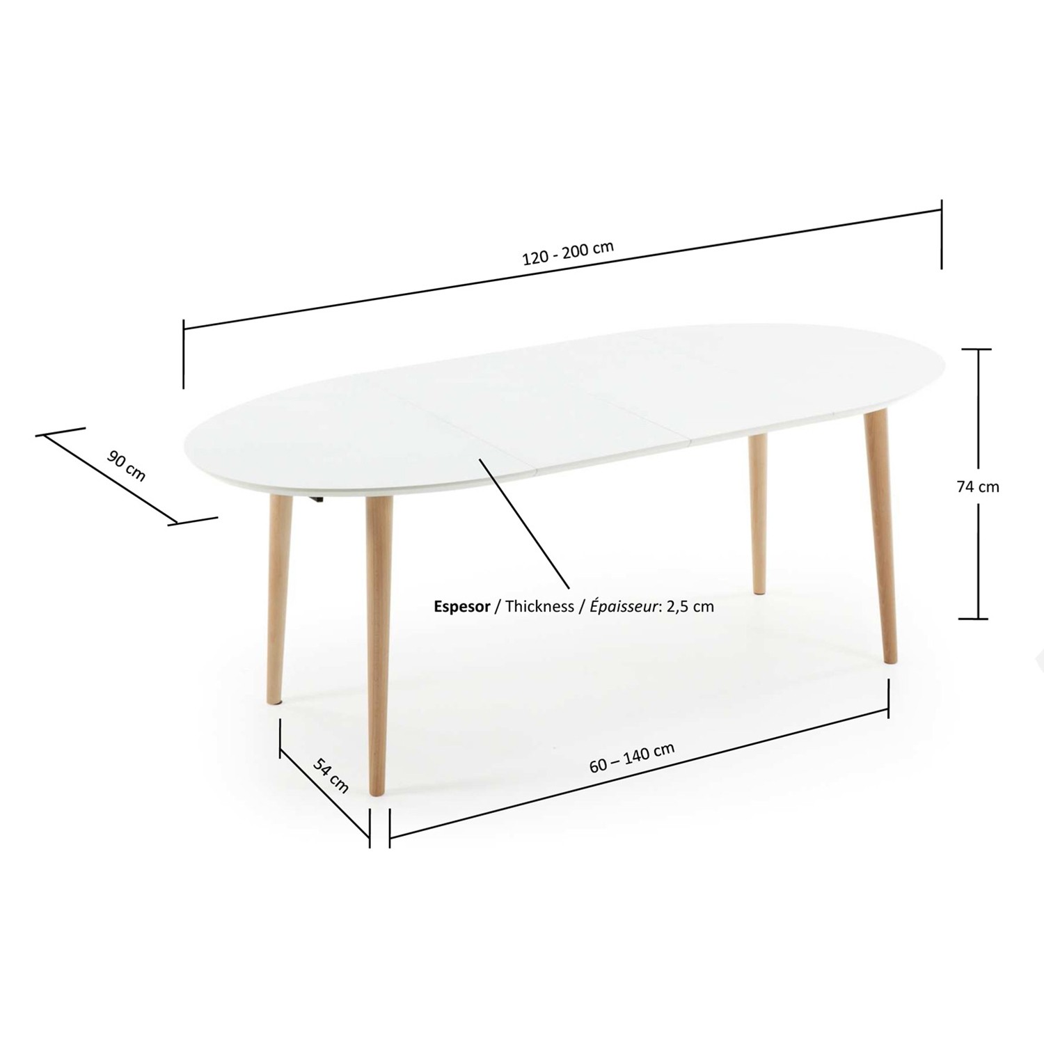 Si necesitas una mesa de comedor o salón y cuando esperas visitas o sois más en casa precisas aumentar el número de cubiertos, la mesa OVAL OAKLAND es tu mueble perfecto. Un diseño espléndido, con los mejores materiales unidos, madera de haya en las patas con sobre de DM blanco de alta resistencia forman esta pieza única.